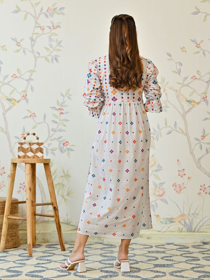 Rustorange Women Ethnic Motif Print Round Neck A-Line Cotton Midi Dress