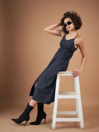 SASSAFRAS Navy Blue Shoulder Straps Empire Parachute Midi Dress