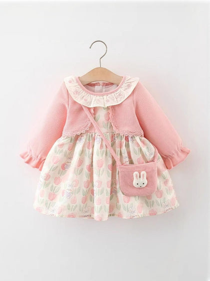 Nauti Nati Girls Cotton Pique Graphic Printed Dress With Bow Collar