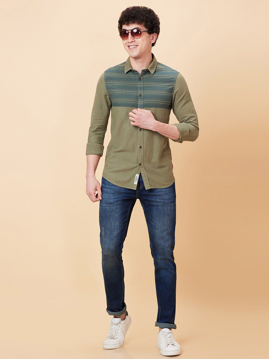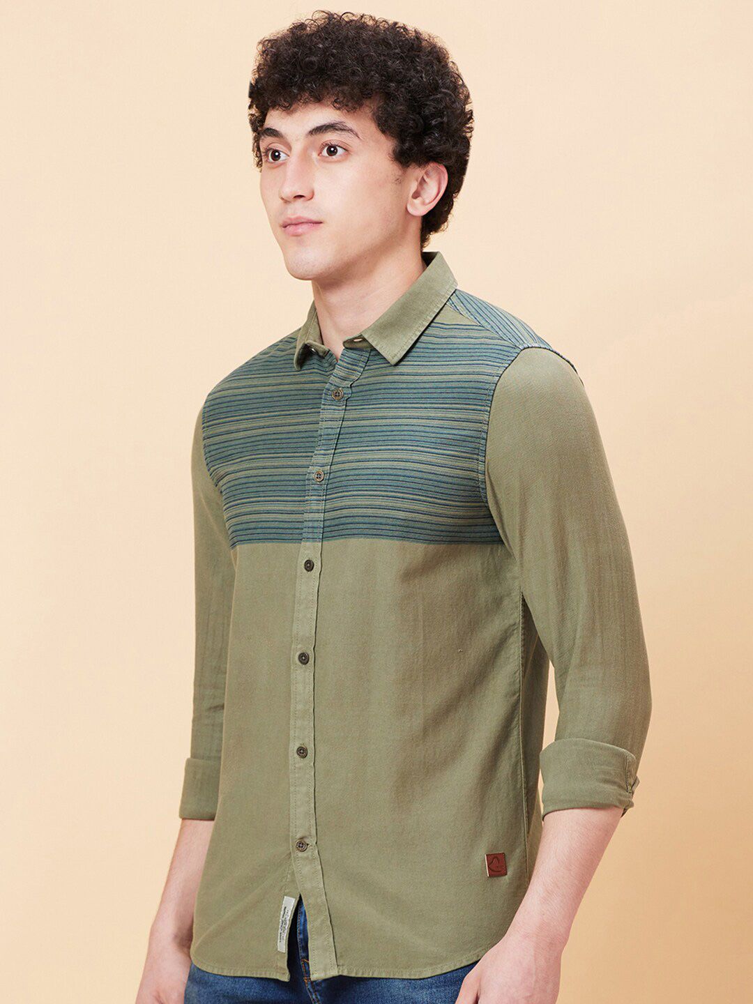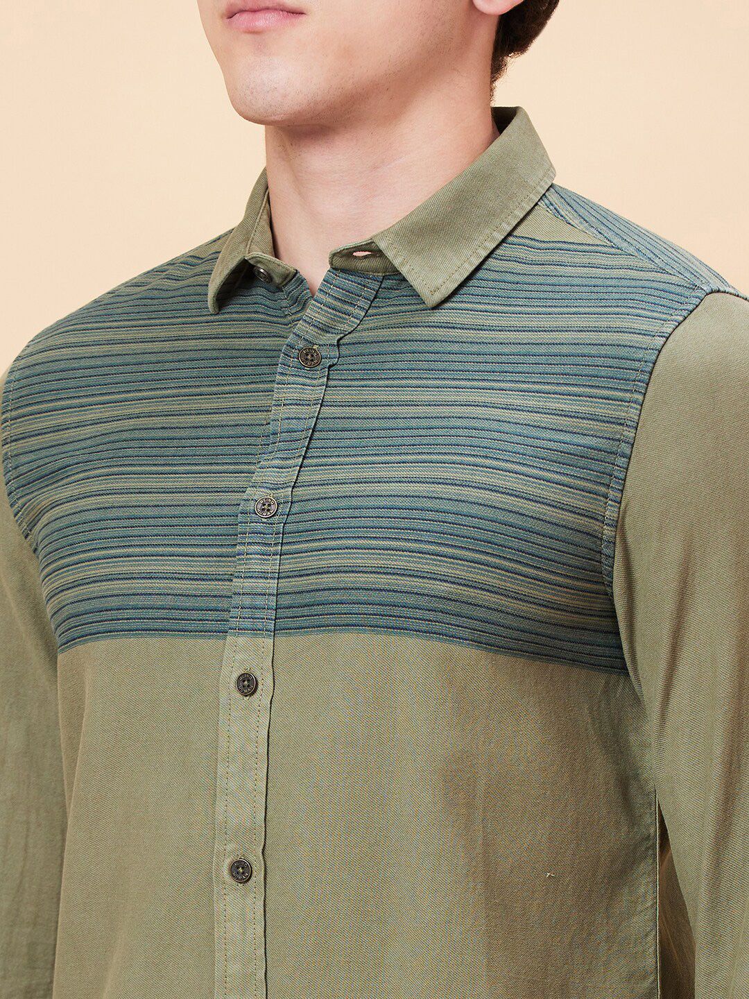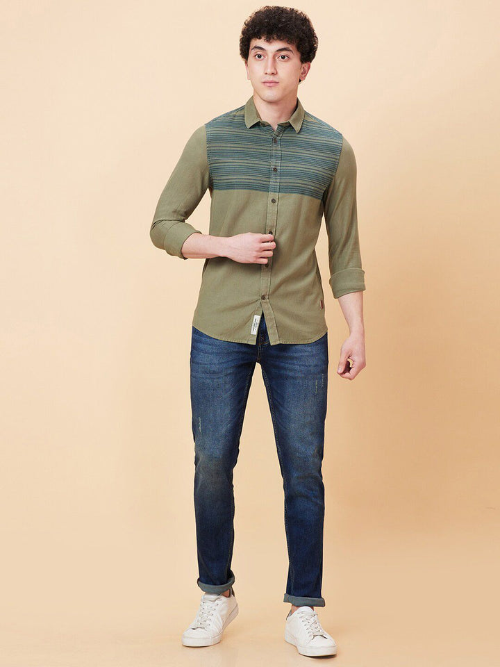 Being Human Spread Collar Slim Fit Horizontal Striped Casual Shirt