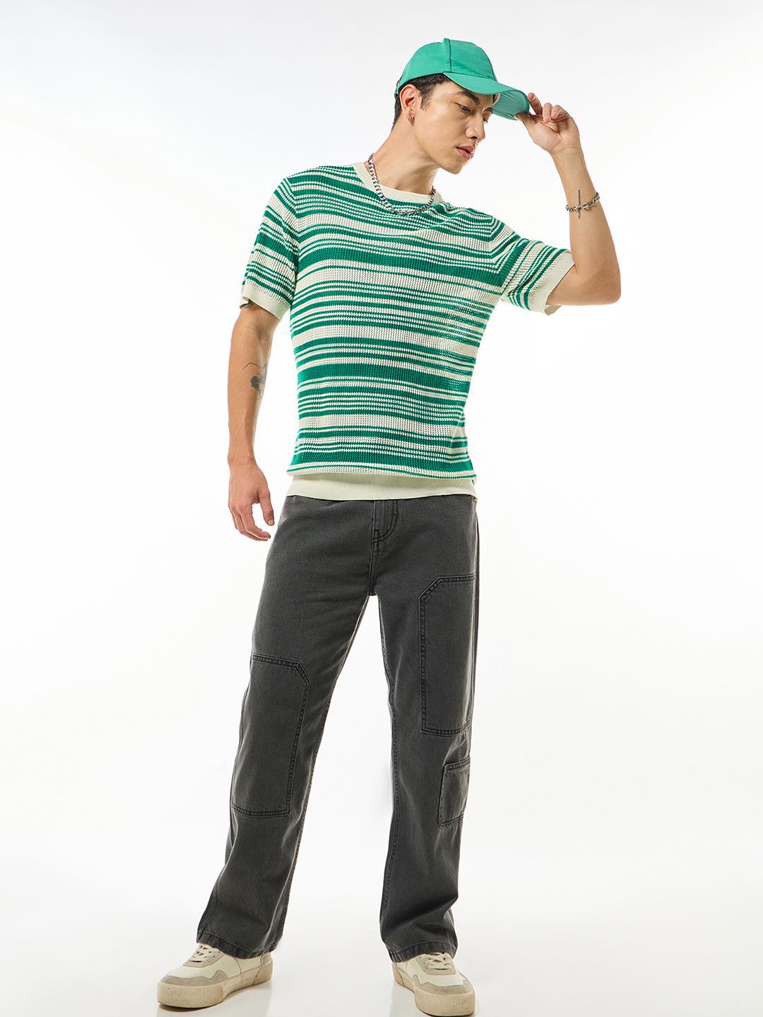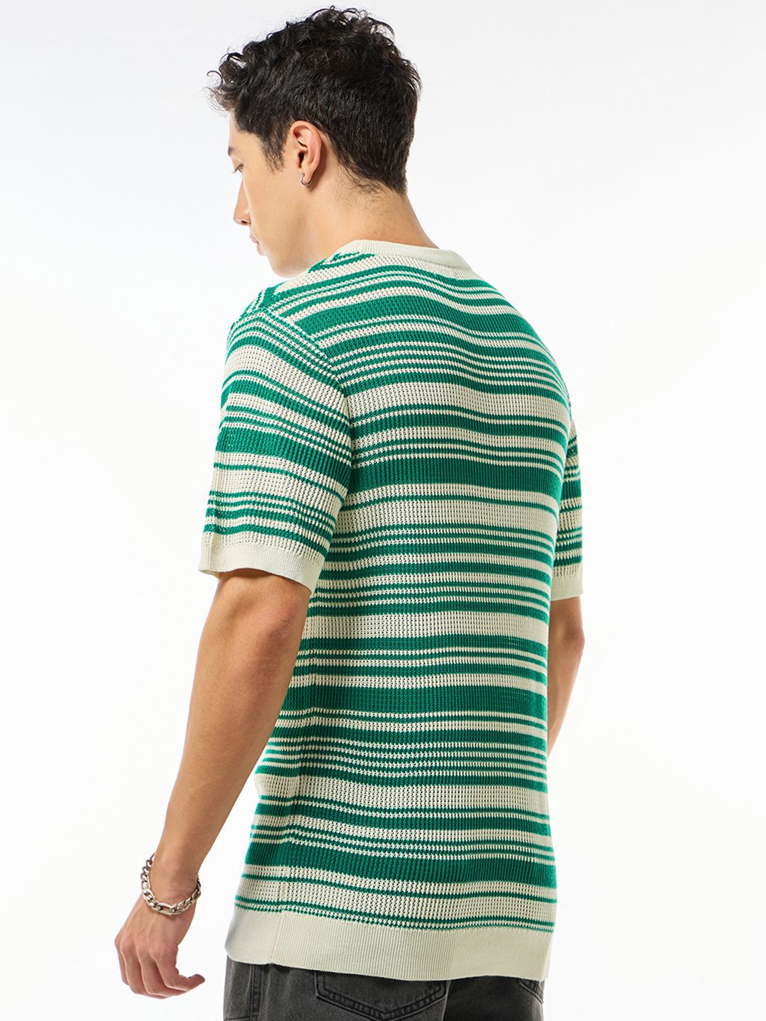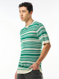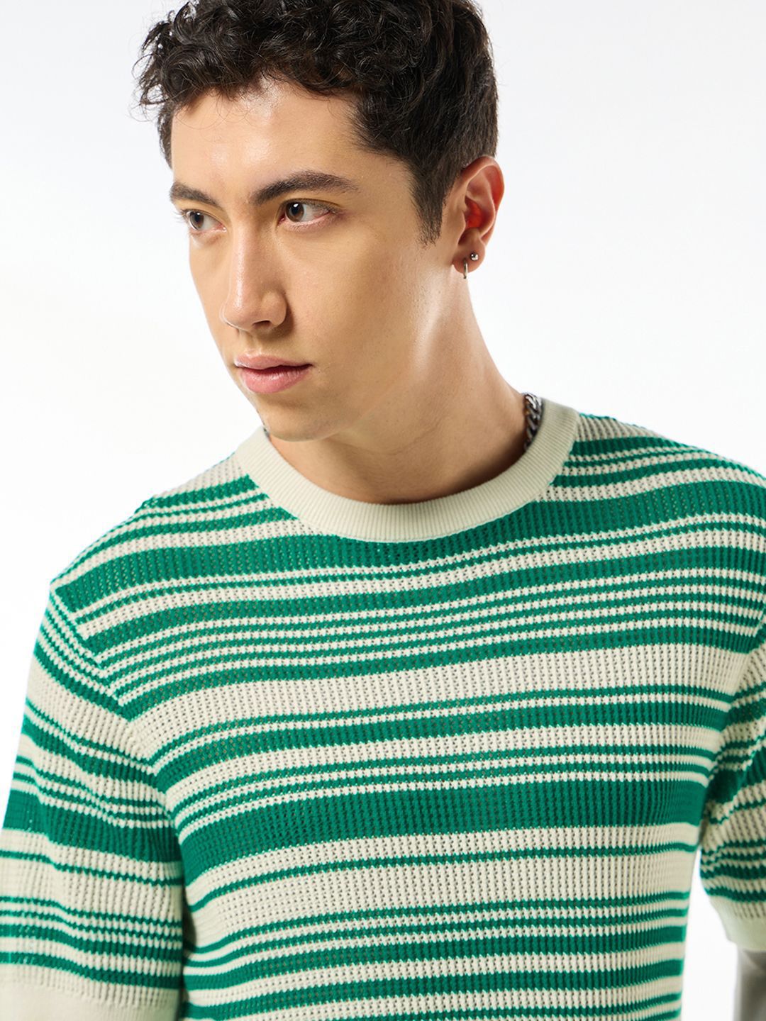 Bewakoof Men Gardenia Striped Round Neck T-shirt