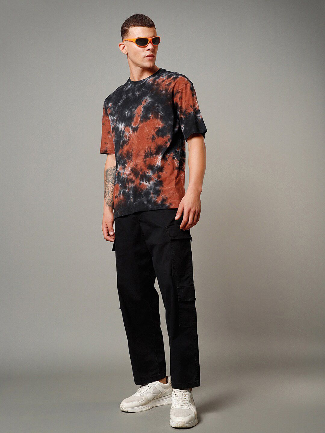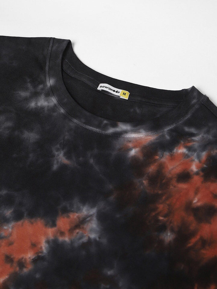 Bewakoof Tie and Dye Printed Drop-Shoulder Pure Cotton Oversized T-shirt