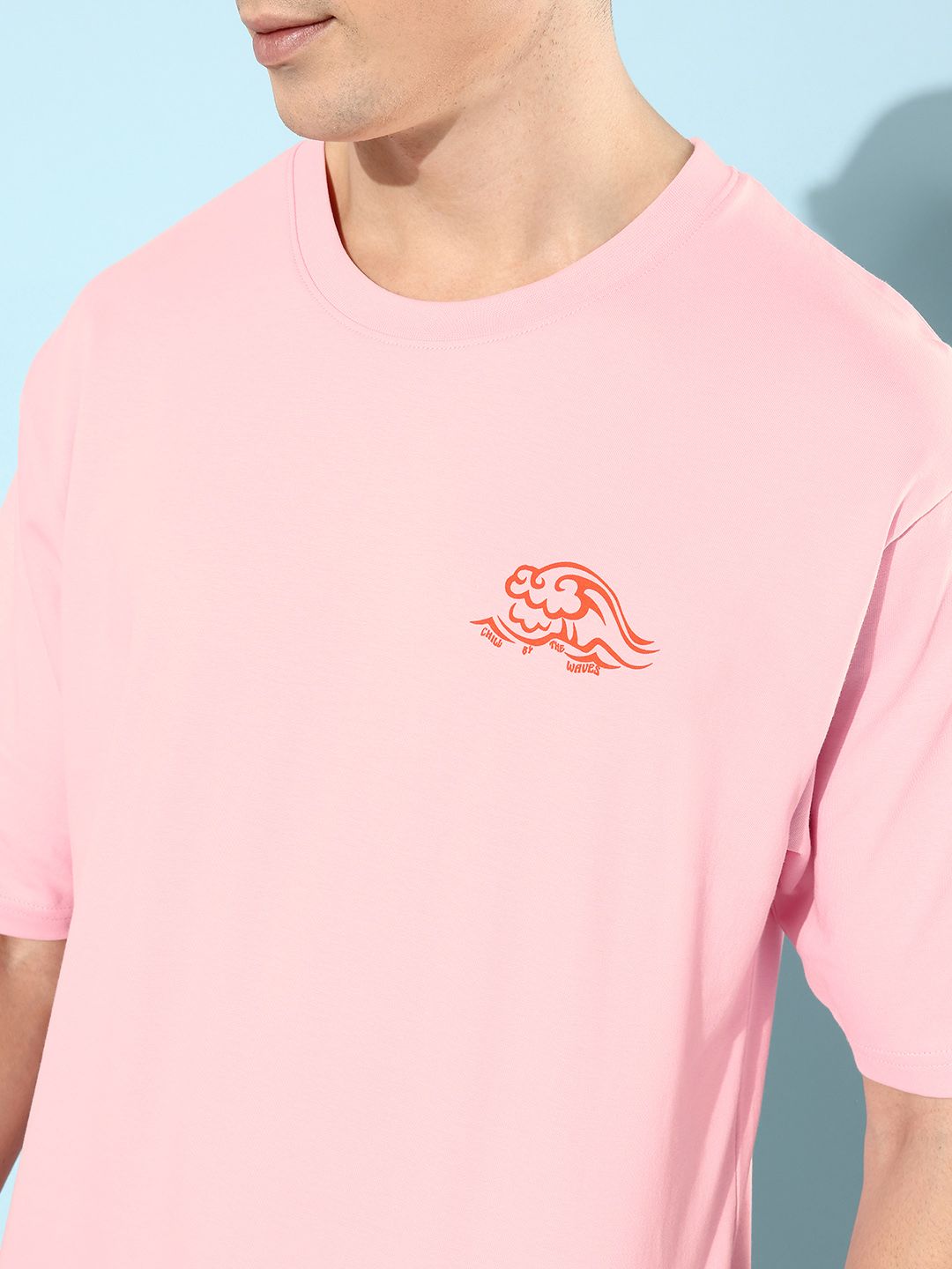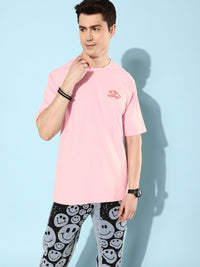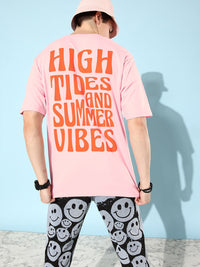 Difference of Opinion Men Pink & Orange Pure Cotton Typography Printed Loose T-shirt