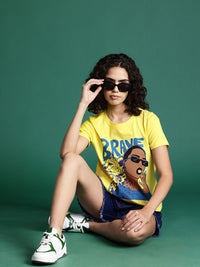 DressBerry Graphic Printed Drop-Shoulder Sleeve T-shirt