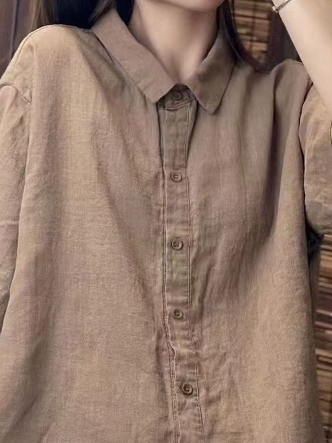 Khaki other checks solid opaque shirt ,has a spread collar, button placket, short regular sleeves, curved hem