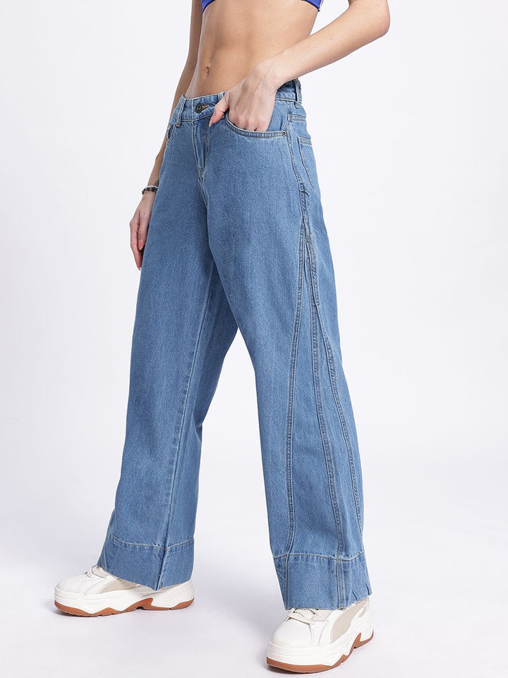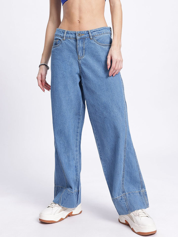 DressBerry Women Effortless Baggy Panelled Wide Leg Jeans