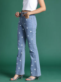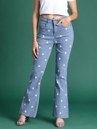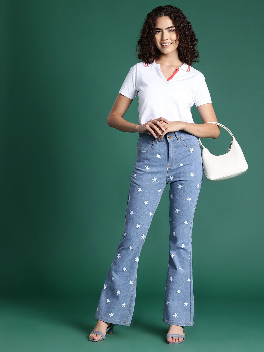 DressBerry Women Flared Fit Printed Mid-Rise Jeans