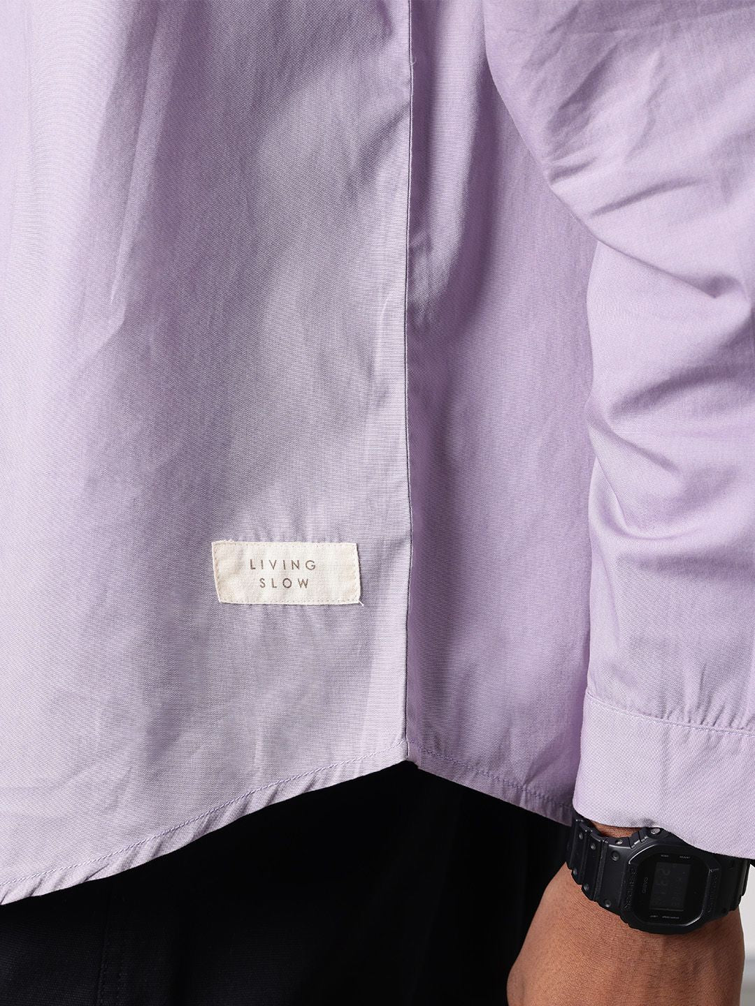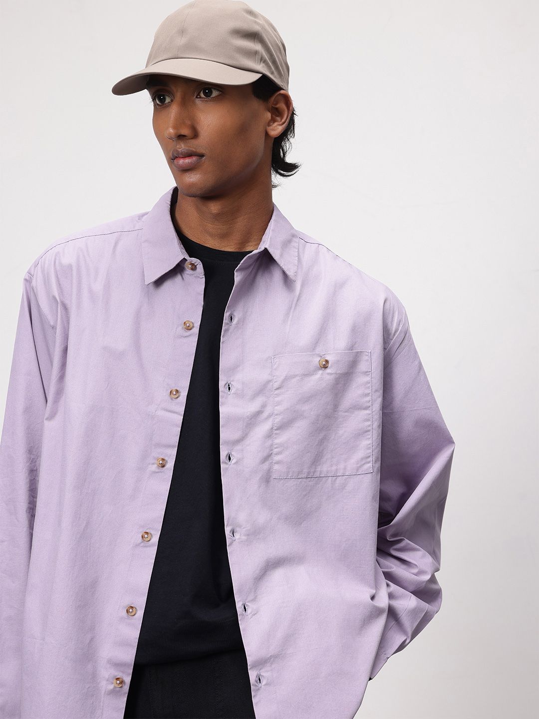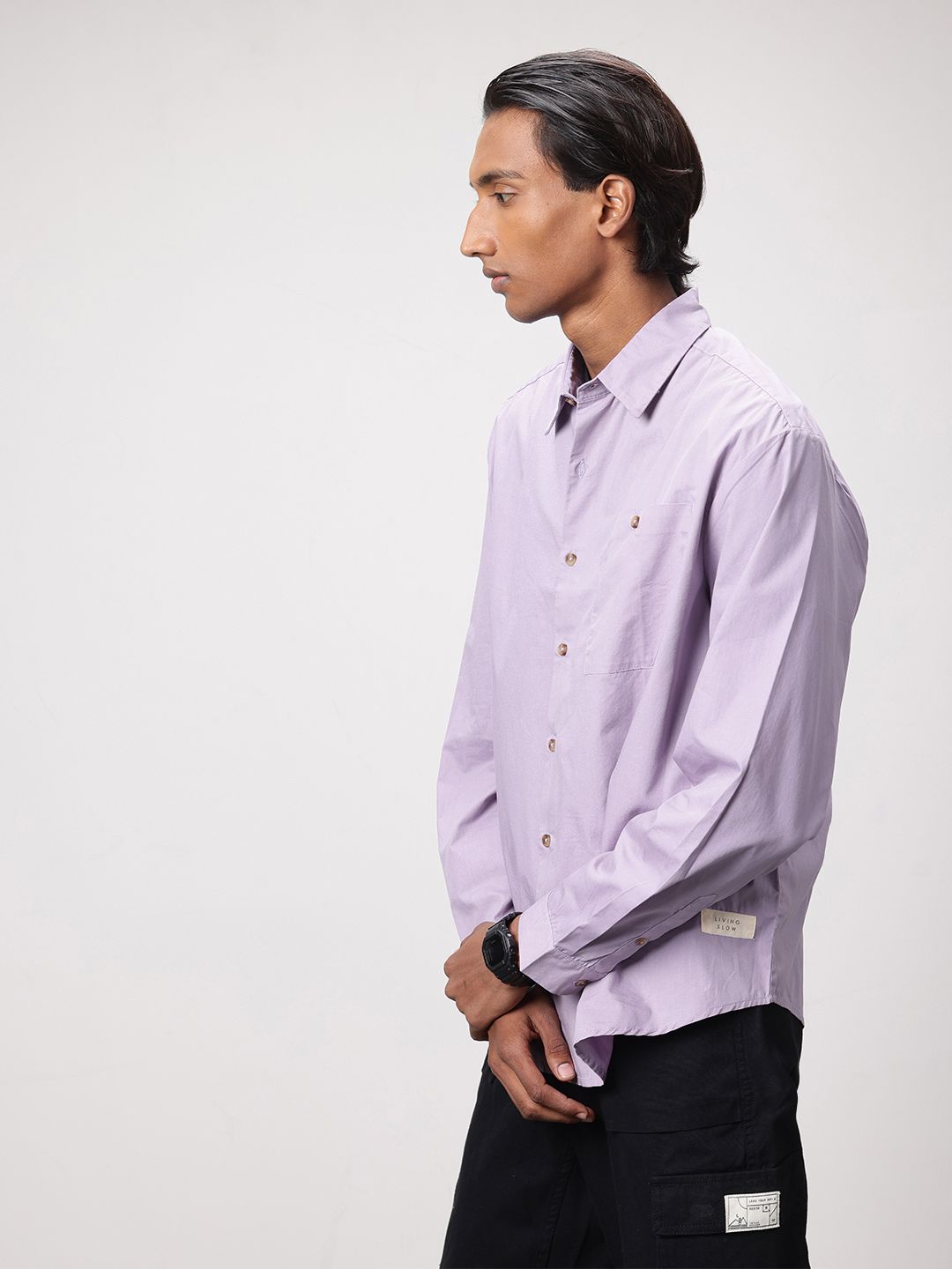 Lavender solid opaque Casual shirt ,has a spread collar, button placket, 1 patch pocket, long drop-shoulder sleeves, curved hem