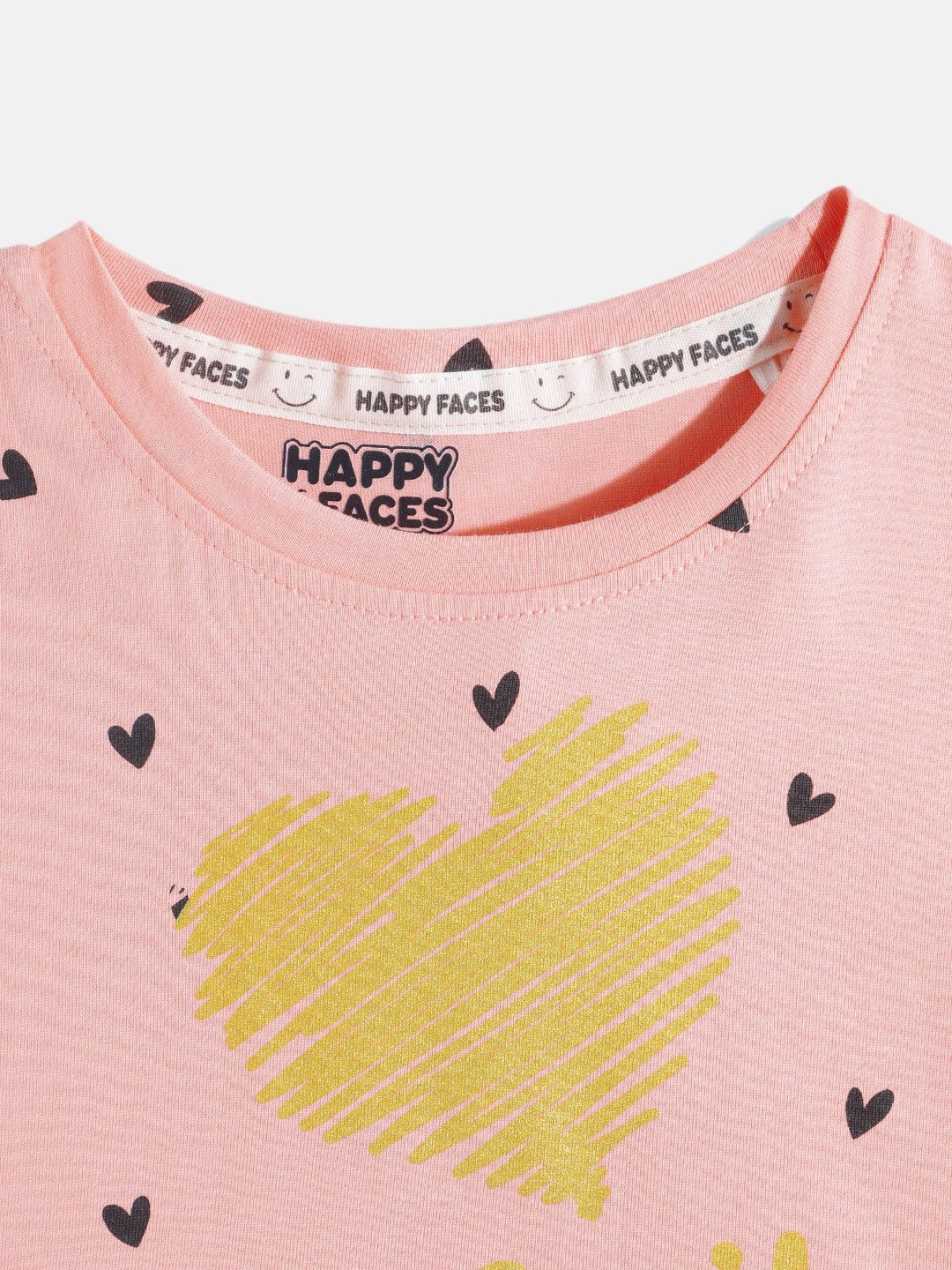 Happy Faces Girls Typography Print Pure Cotton T-shirt