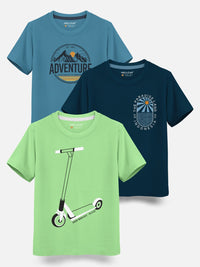 HELLCAT Boys Pack Of 3 Printed Cotton T-shirt