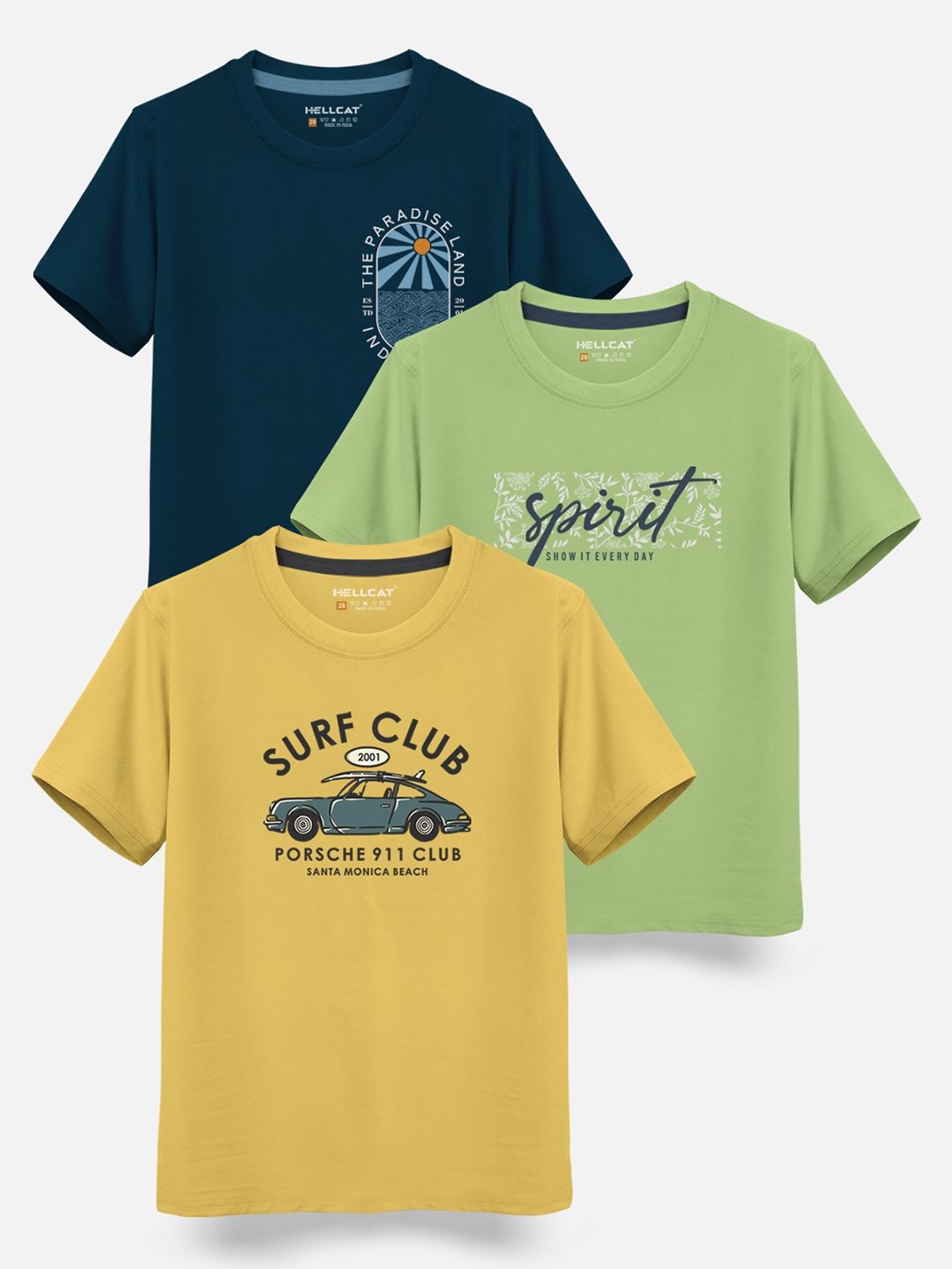 HELLCAT Boys Pack Of 3 Printed Cotton T-shirt