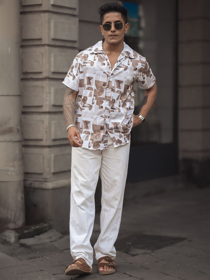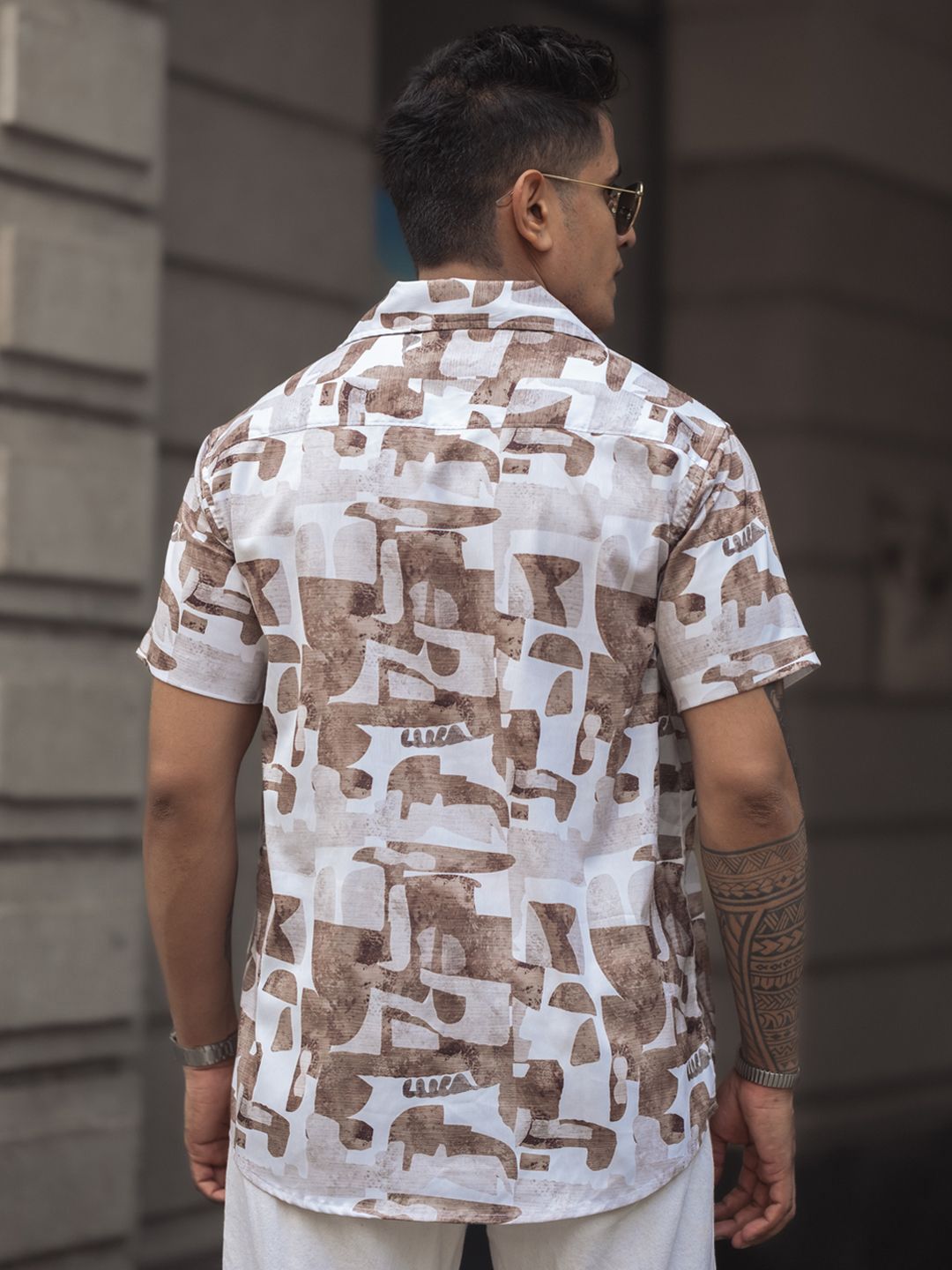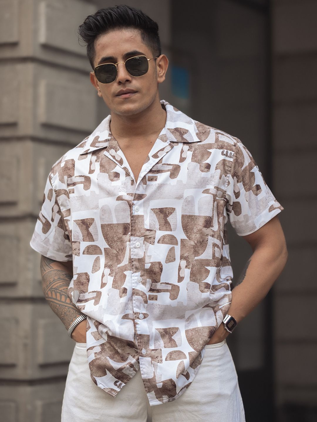 Powerlook Men Cuban Collar Graphic Printed Casual Shirt