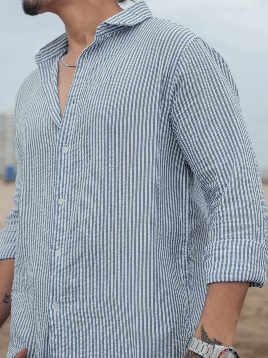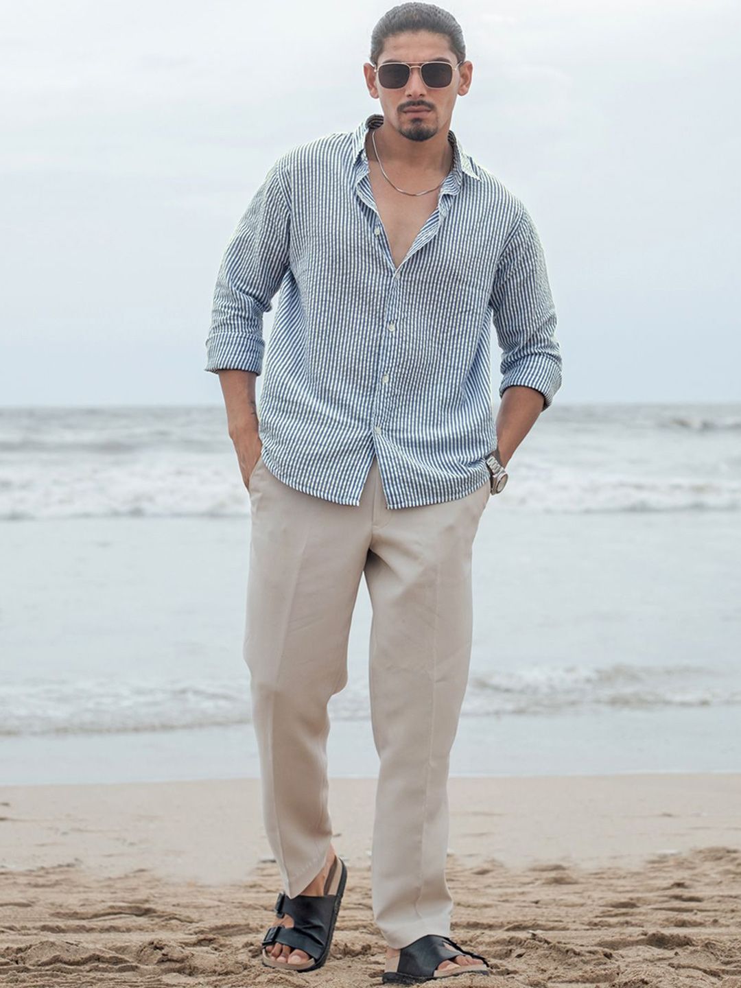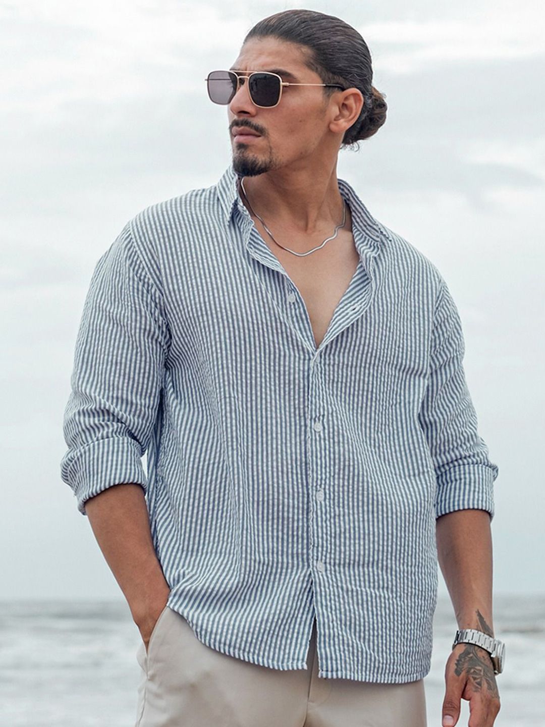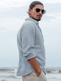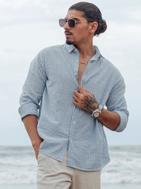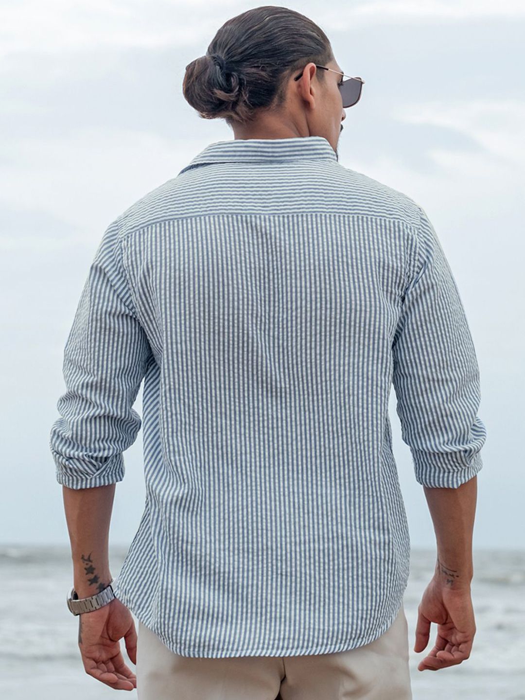 Blue other checks striped opaque Casual shirt ,has a spread collar, button placket, na pocket, long regular sleeves, straight hem