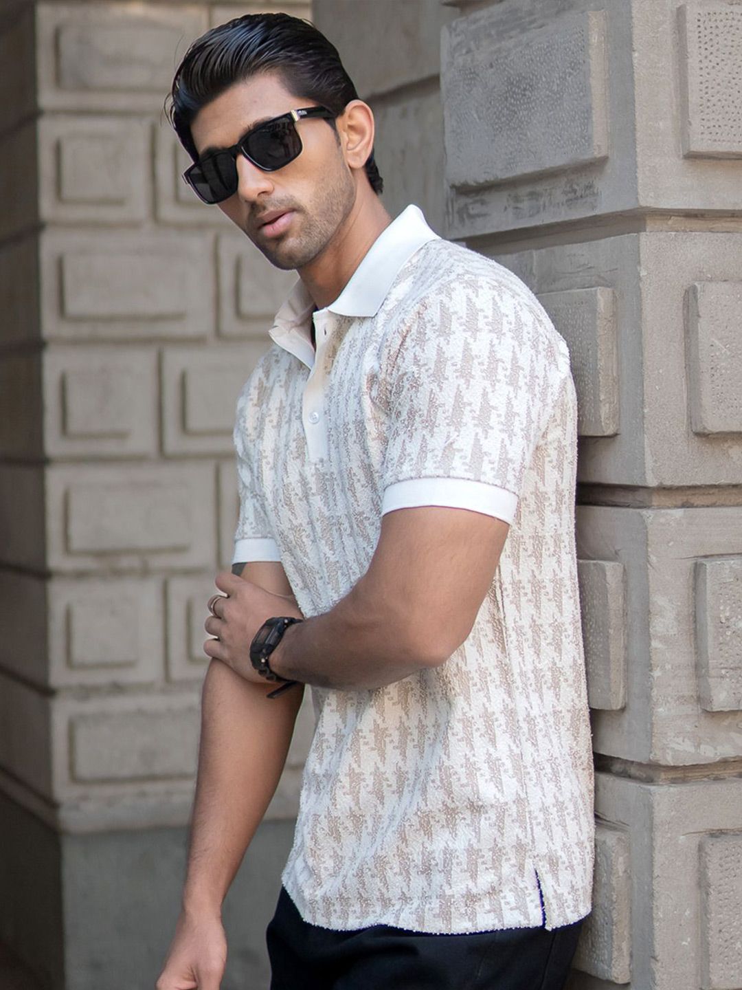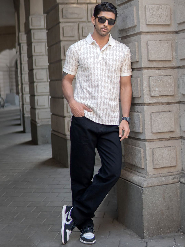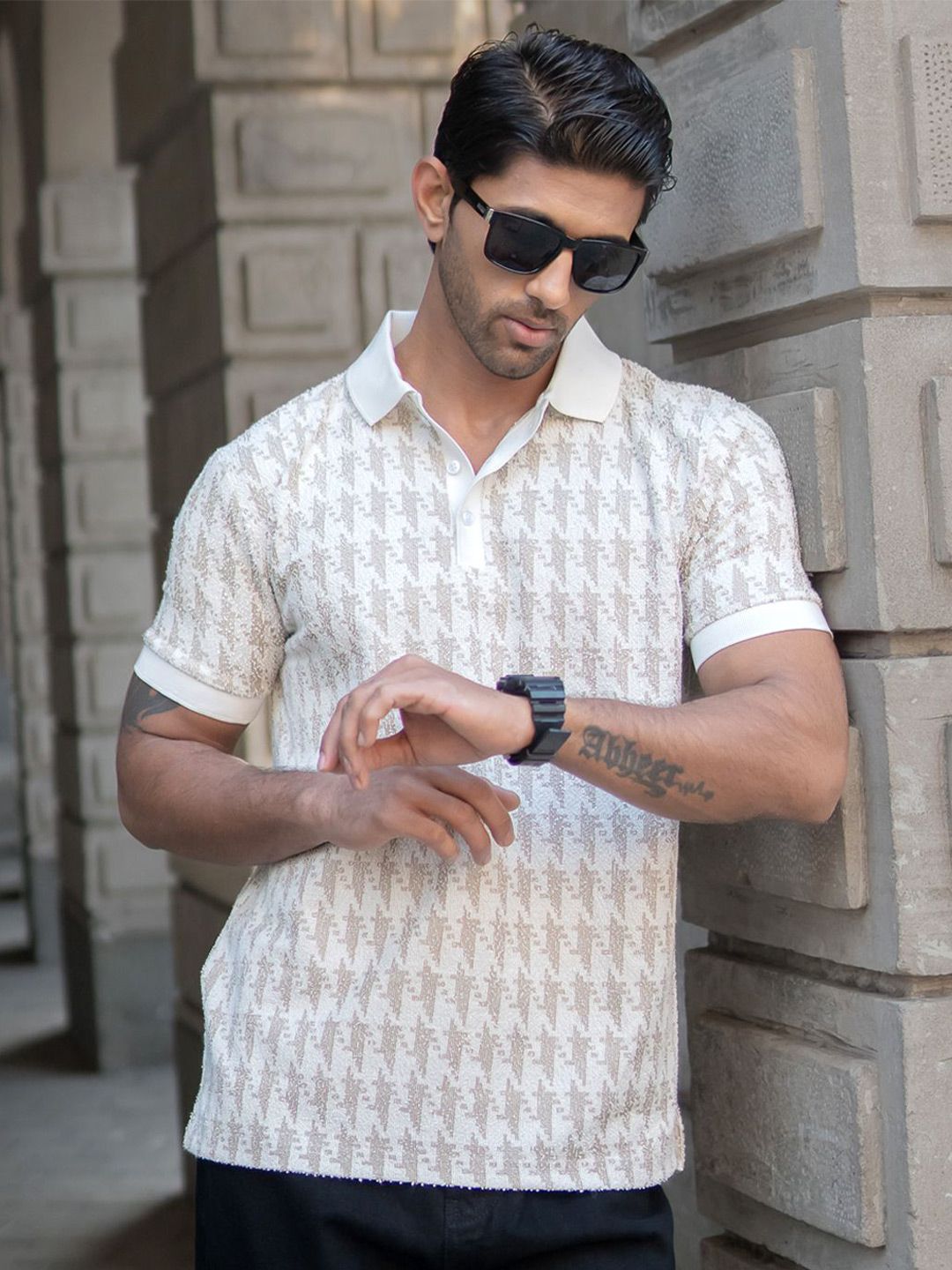 Powerlook Men Regular Fit Conversational Printed Polo Collar T-shirt