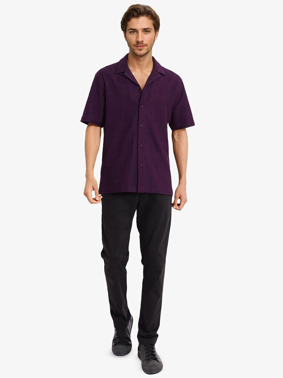 RARE RABBIT Men Comfort Cuban Collar Solid Cotton Boxy Casual Shirt