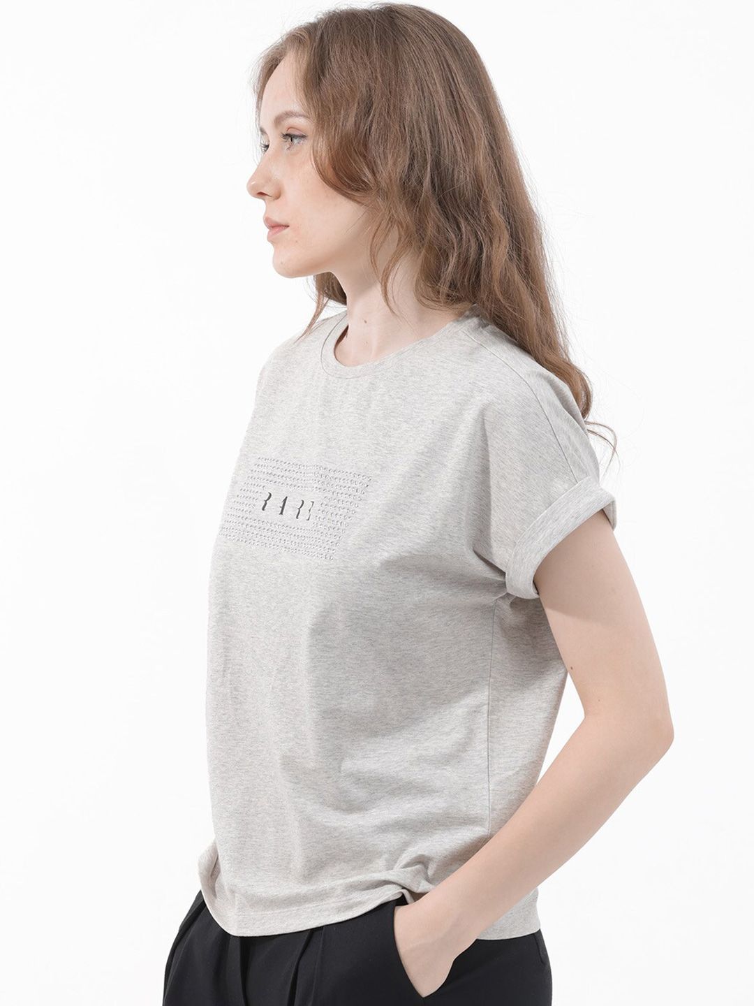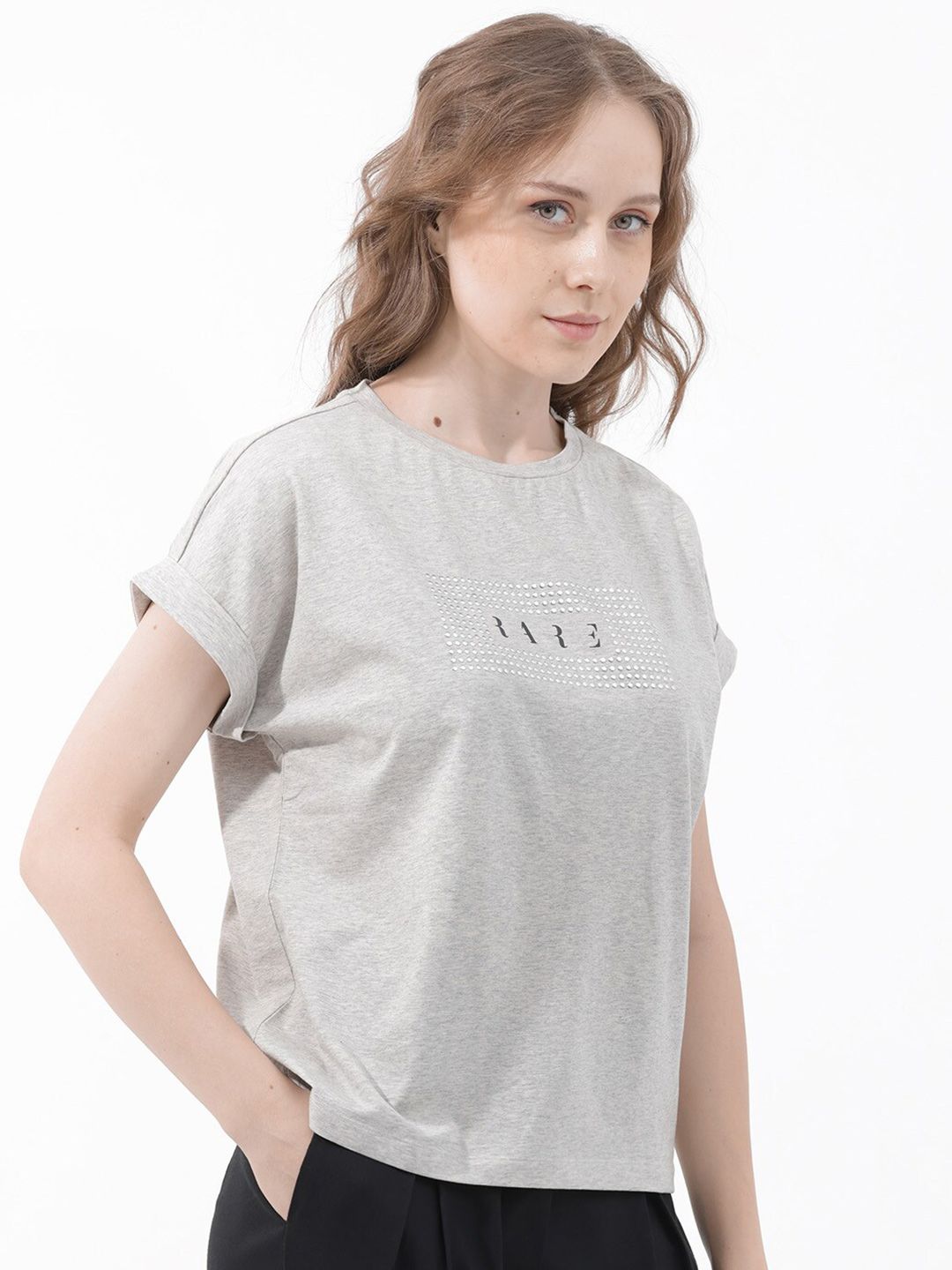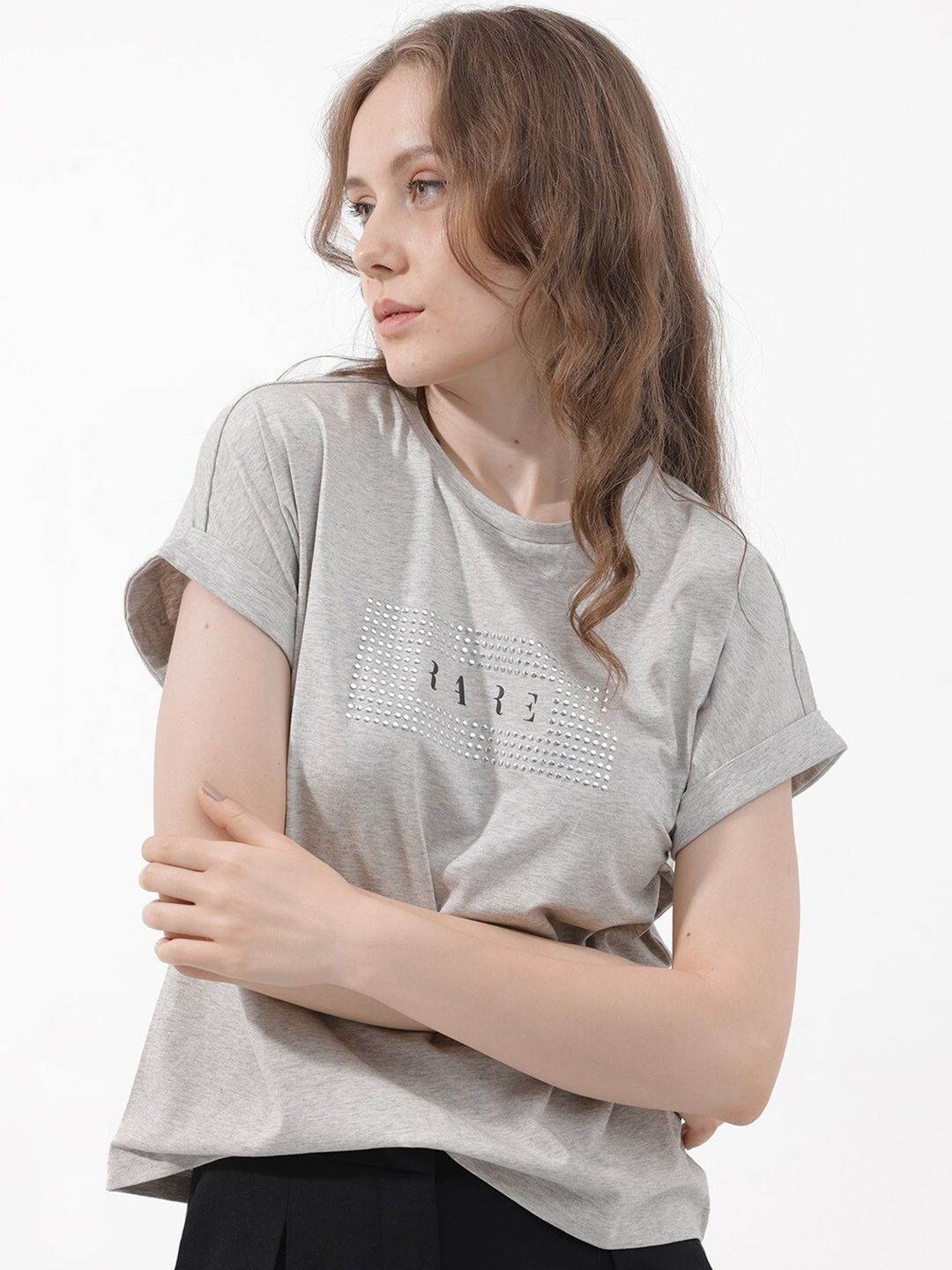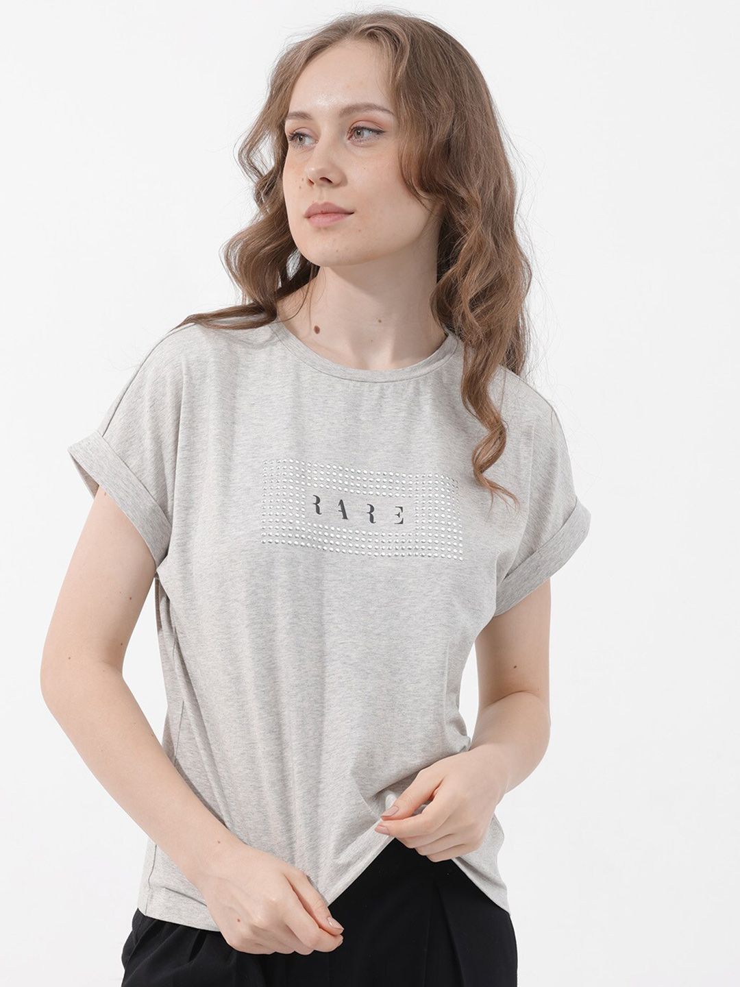 RAREISM Women Solid Extended Sleeves T-shirt