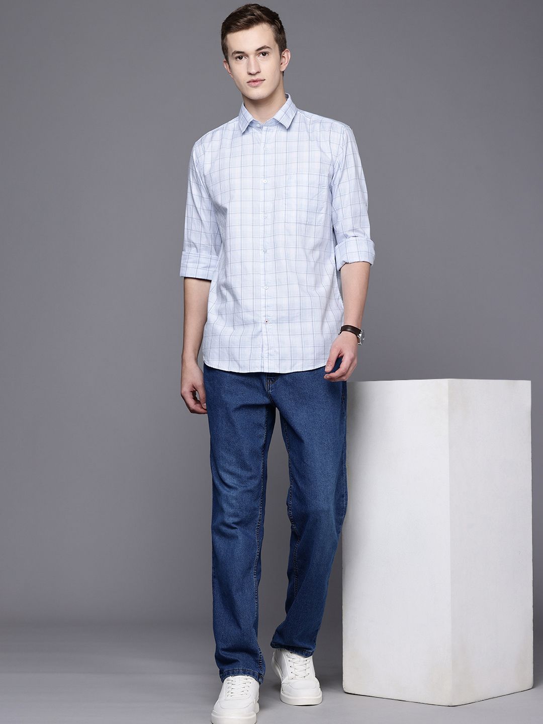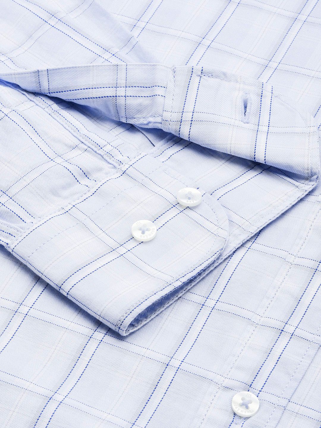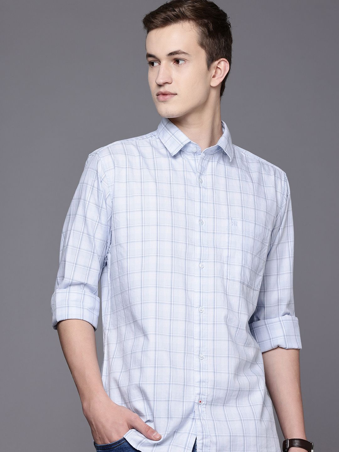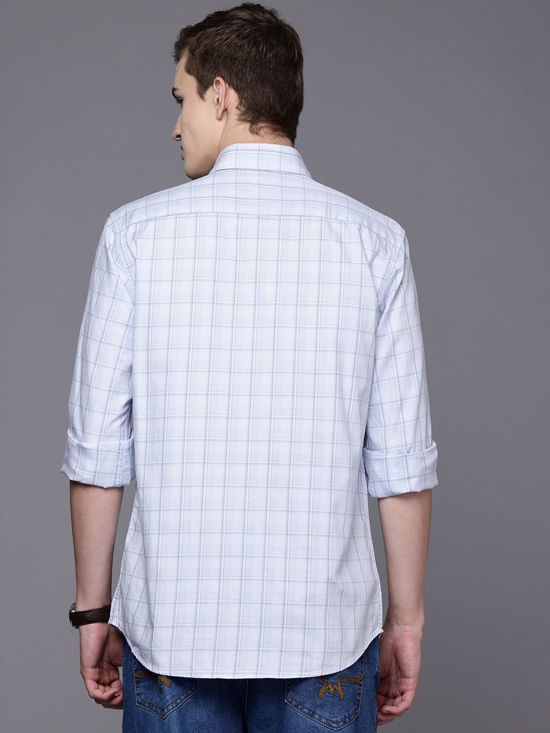 Blue& white other checks opaque casual shirt ,has a spread collar, button placket, 1 patch pocket, long regular sleeves, curved hem