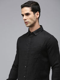 Black solid Casual shirt ,has a spread collar, button placket, 1 patch pocket, long regular sleeves, curved hem