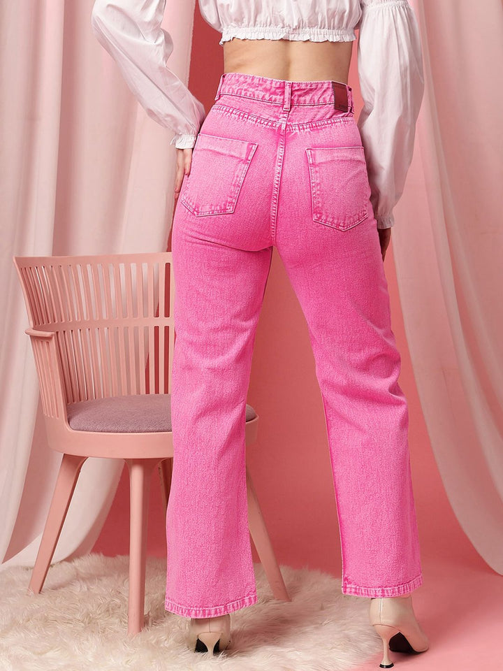 STREET 9 Women Comfort Straight Fit High-Rise Clean Look Pure Cotton Jeans