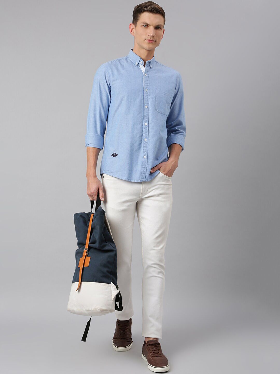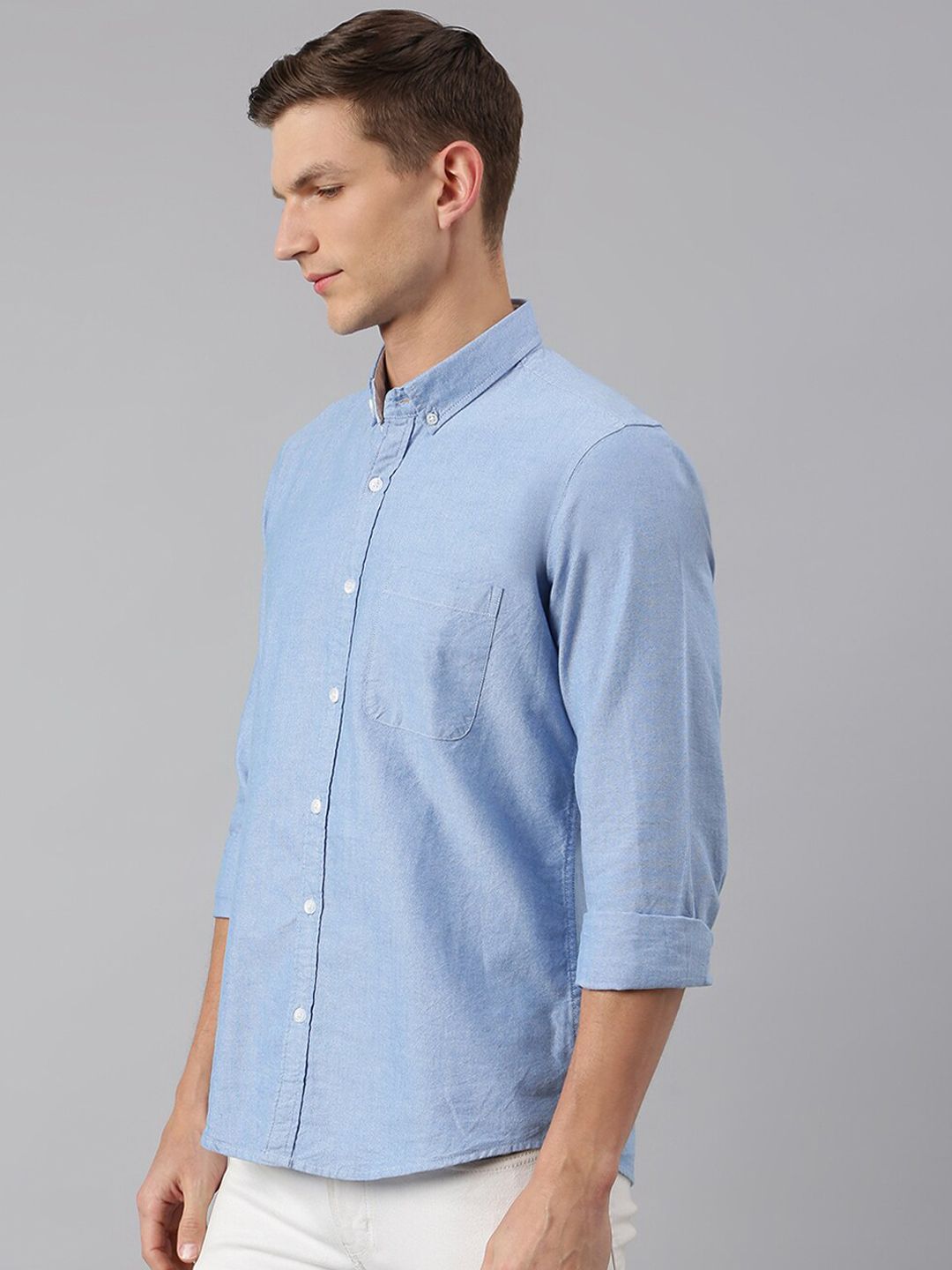 Thomas Scott Men Blue Slim Fit Pure Cotton Casual Shirt