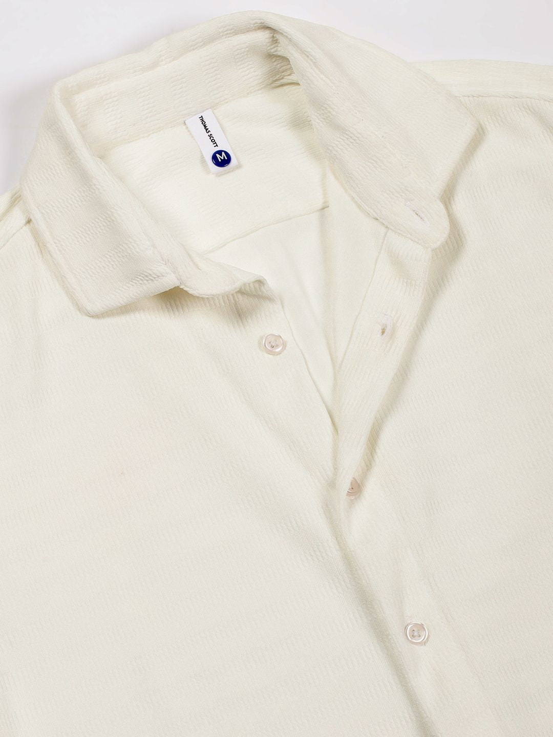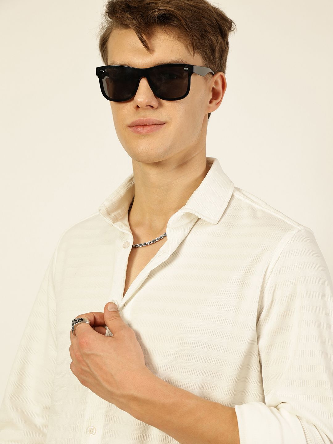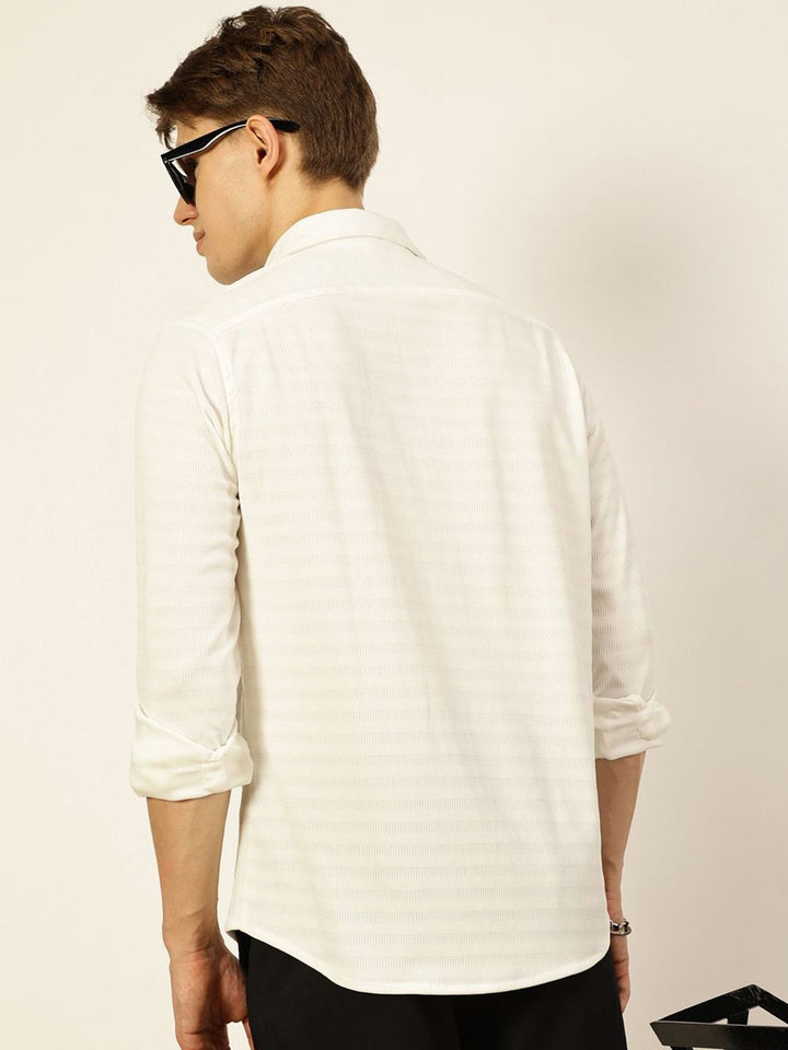 Thomas Scott Men Premium Spread Collar Horizontal Striped Casual Shirt
