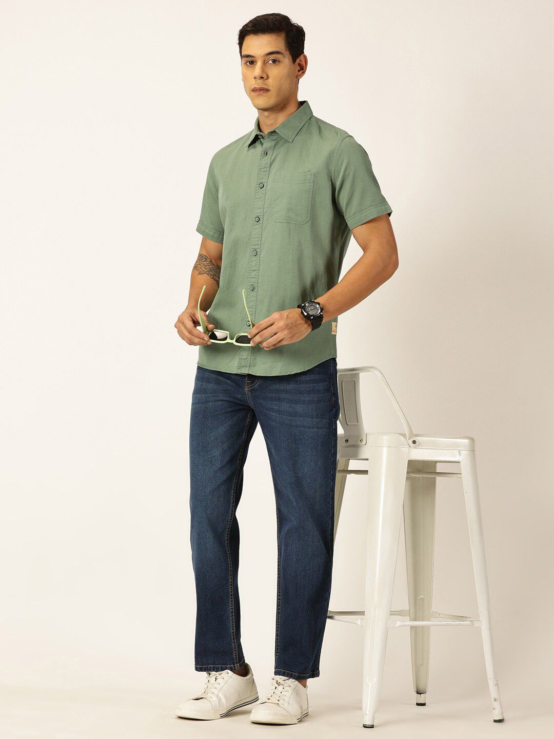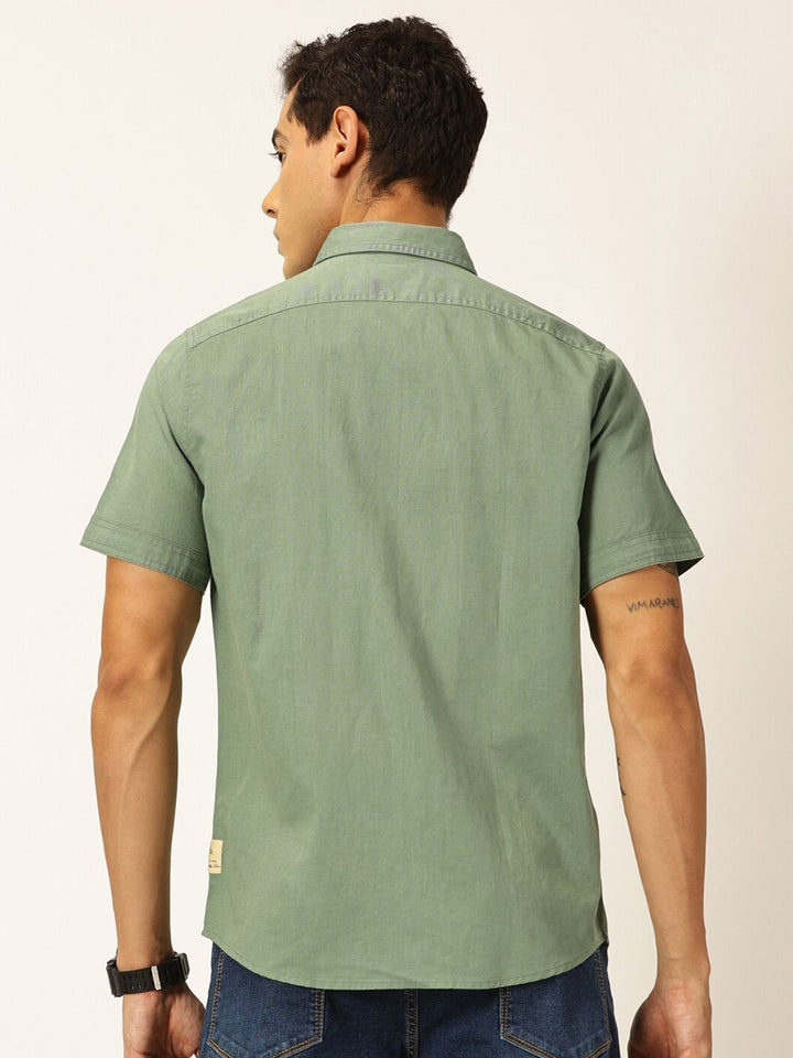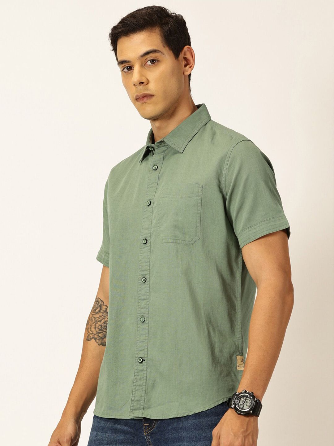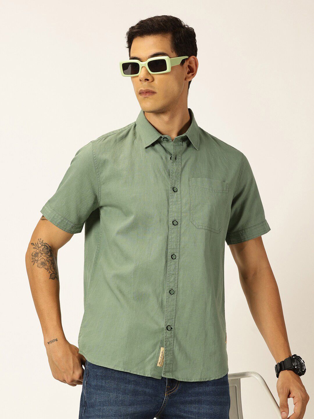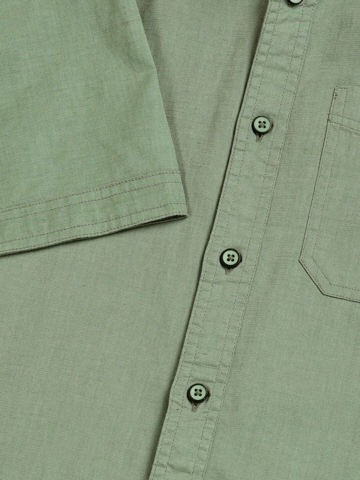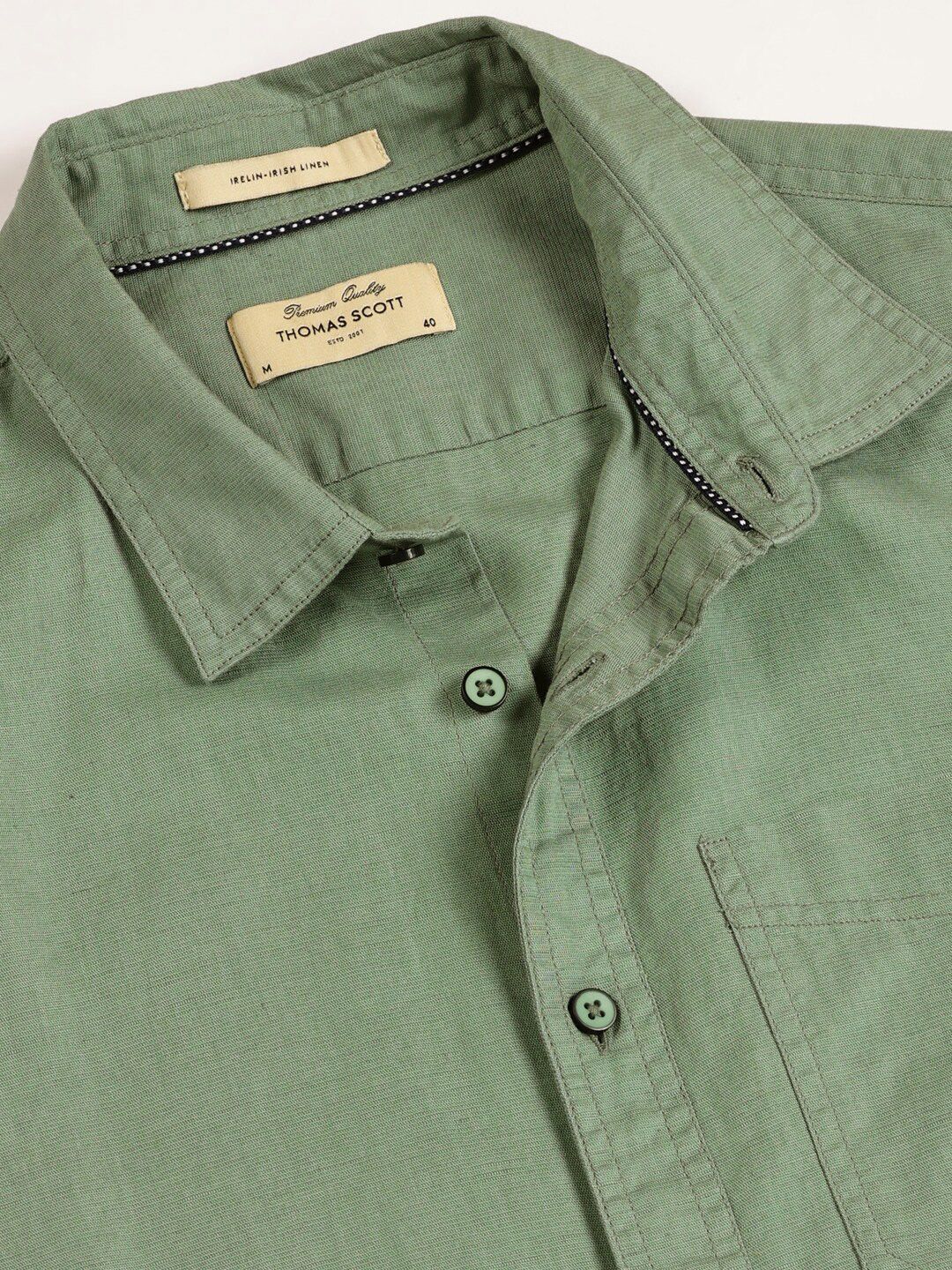 Thomas Scott Premium Spread Collar Cotton Linen Short Sleeves Casual Shirt