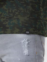Urbano Fashion Men Olive Green Camouflage Printed Pure Cotton Slim Fit T-shirt