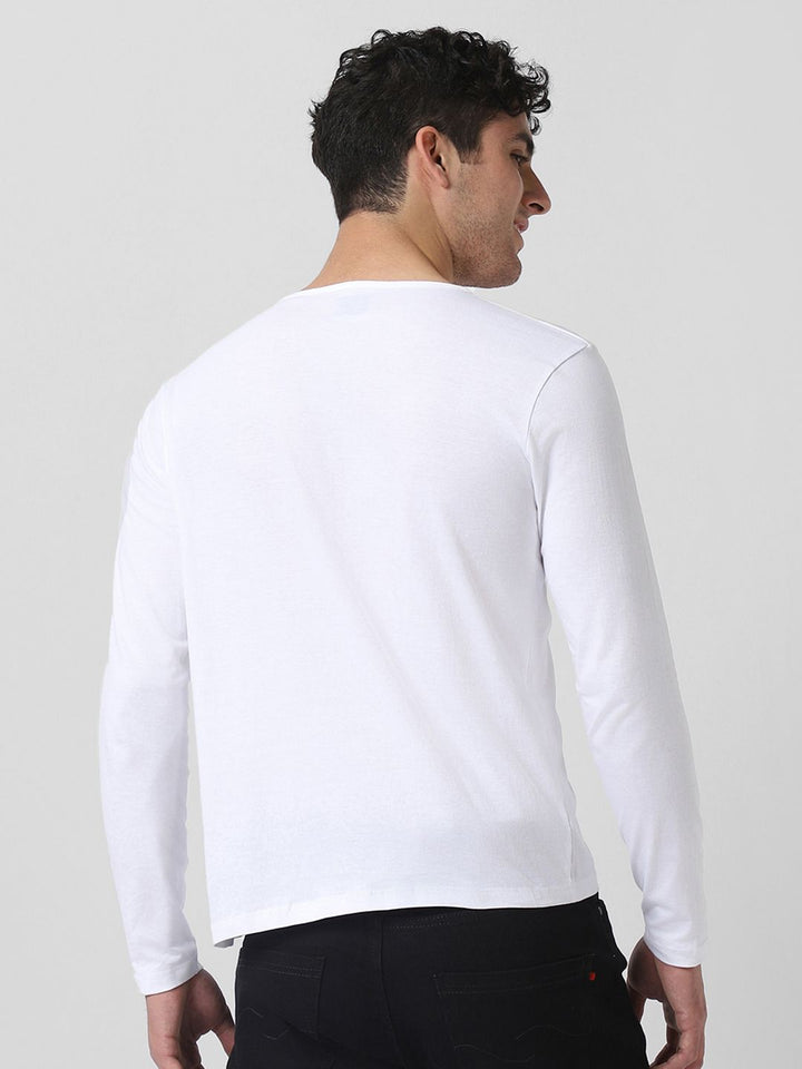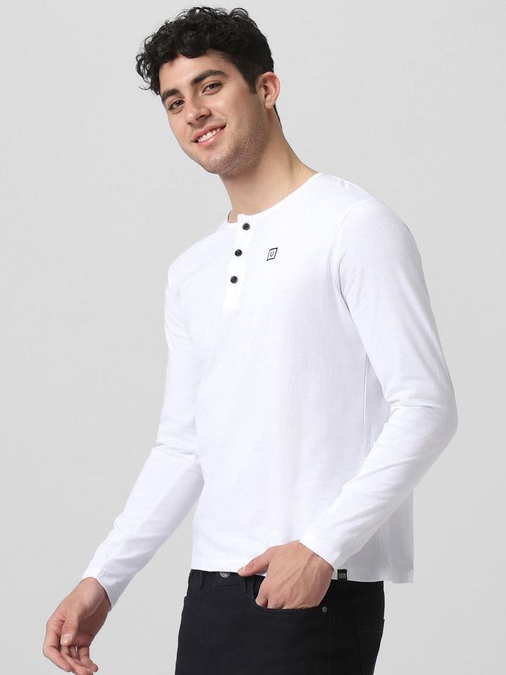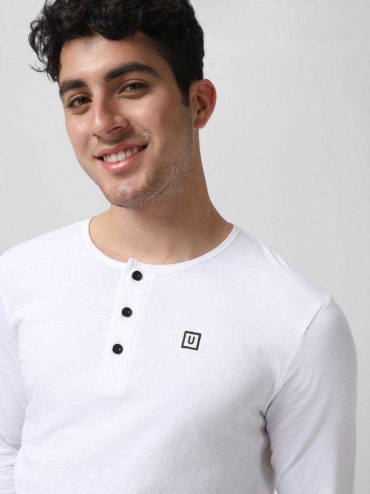 Urbano Fashion Men White Solid Henley Neck Pure Cotton T-shirt
