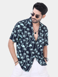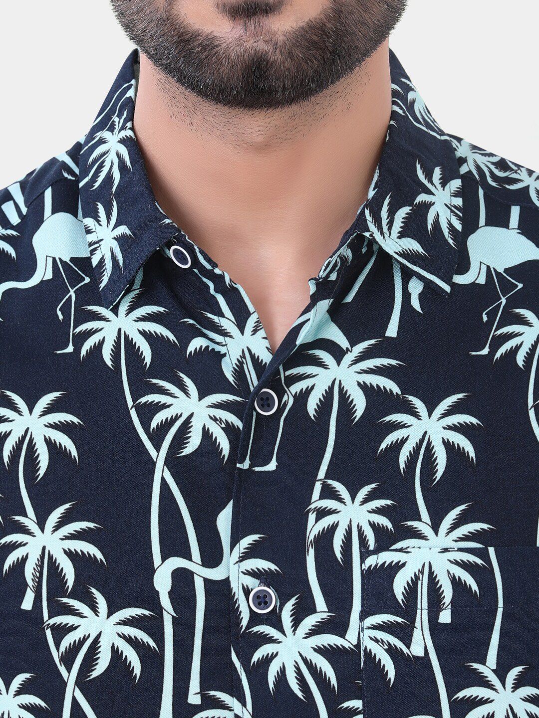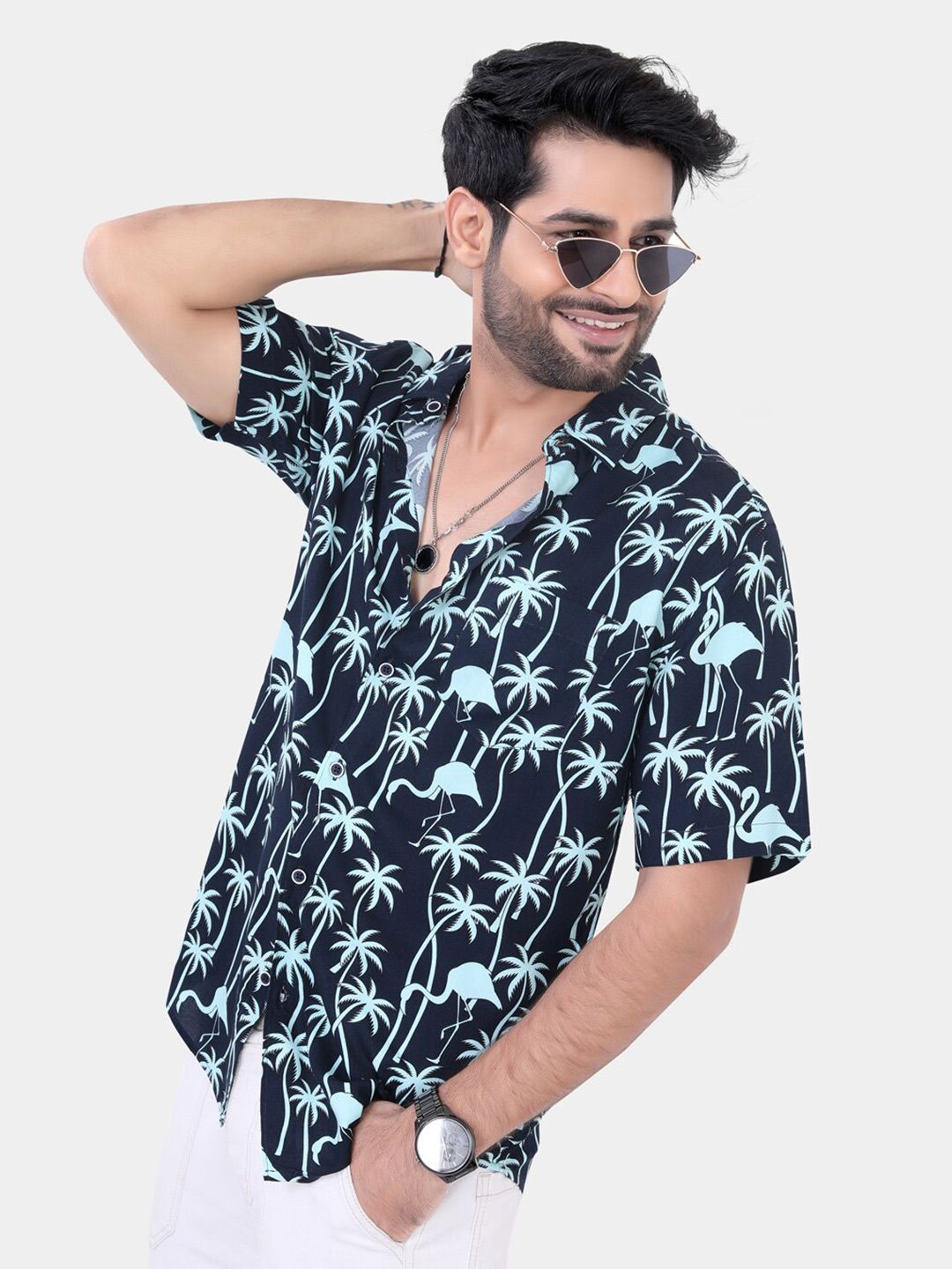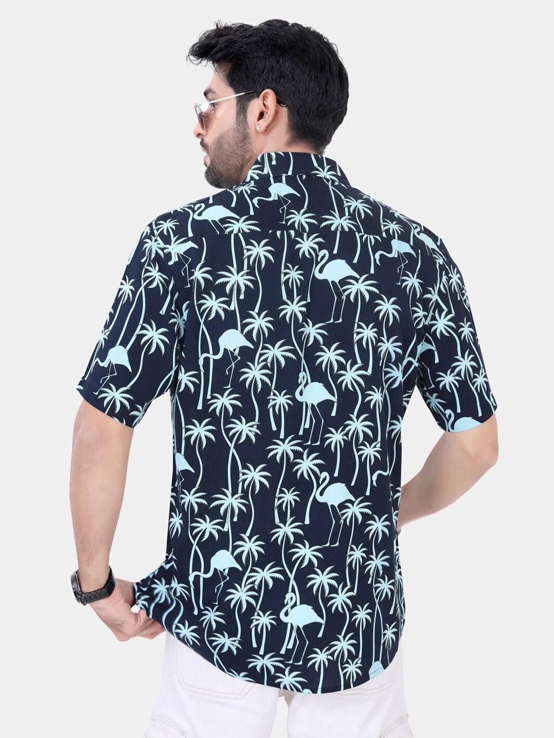 Navy blue floral printed casual shirt ,has a button-down collar, button placket, 1 patch pocket, short,