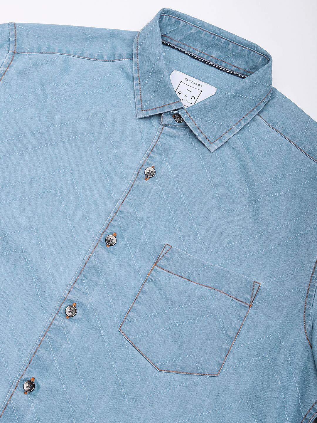 Blue textured self design opaque Casual shirt ,has a cutaway collar, button placket, 1 patch pocket, long regular sleeves, curved hem