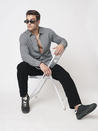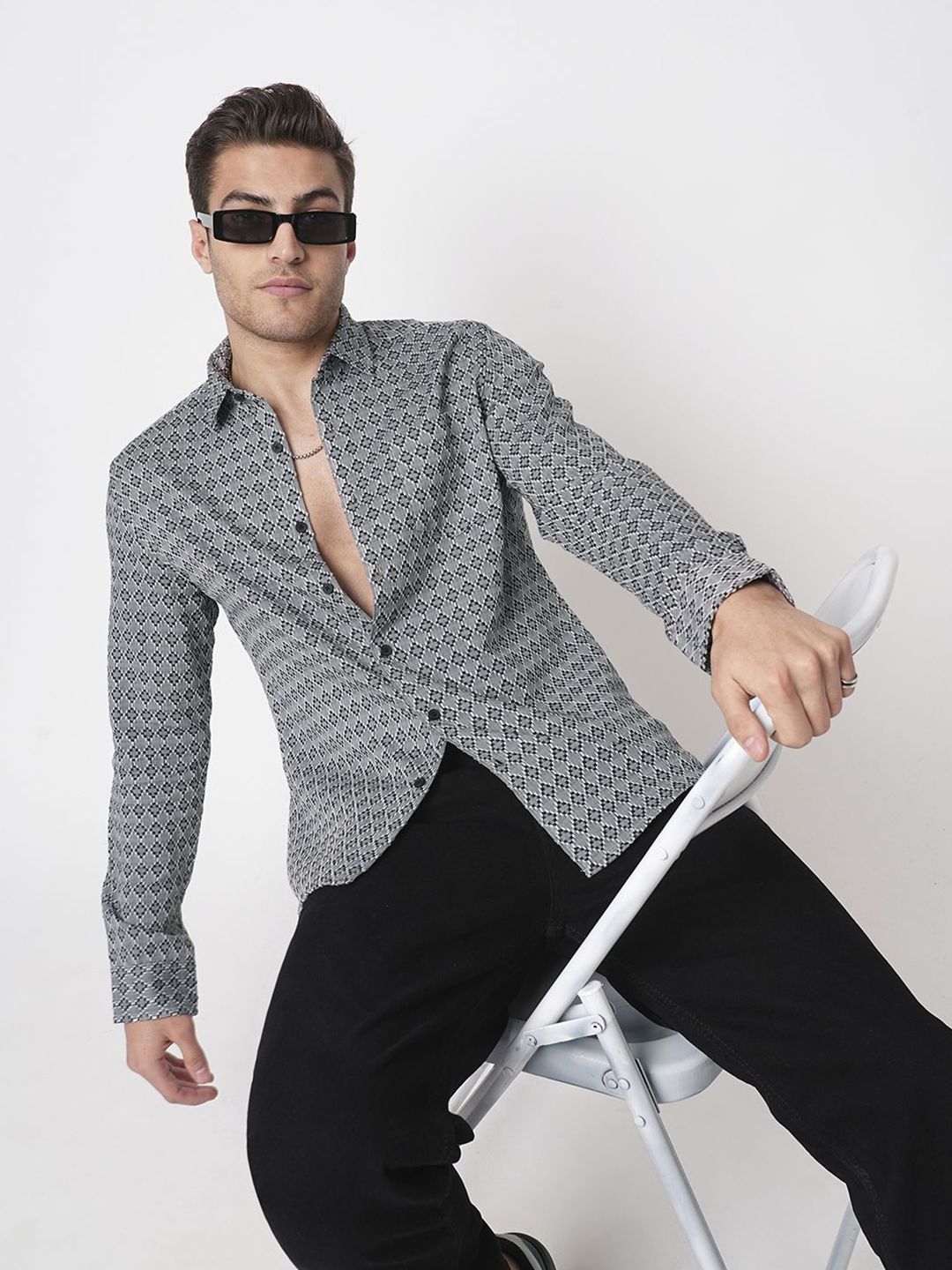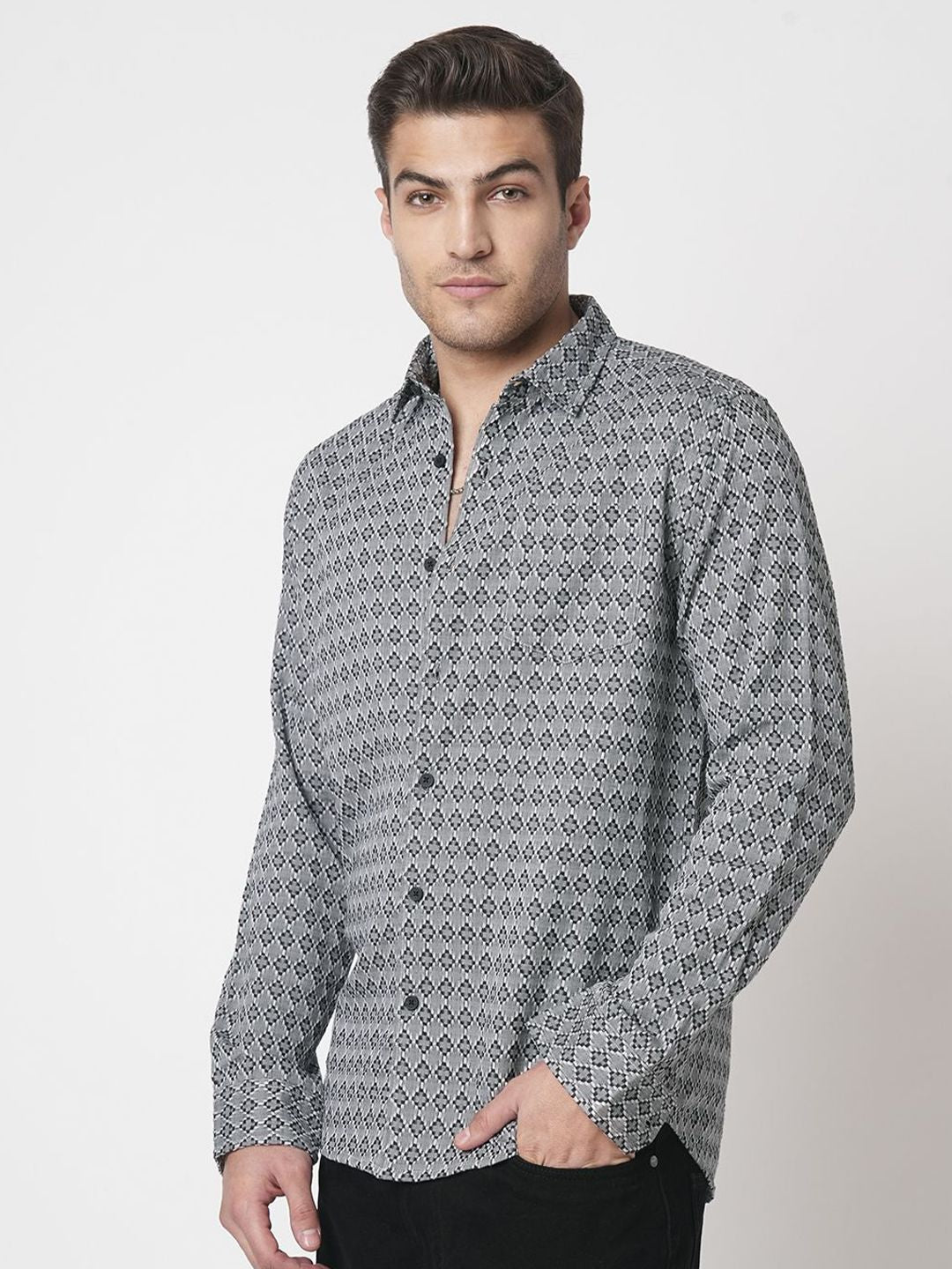 Grey textured self design opaque Casual shirt ,has a cutaway collar, button placket, 1 patch pocket, long regular sleeves, curved hem