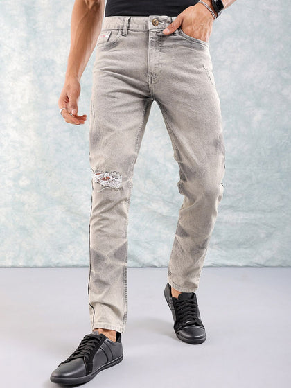The Indian Garage Co Men Slim Fit Mildly Distressed Heavy Fade Jeans