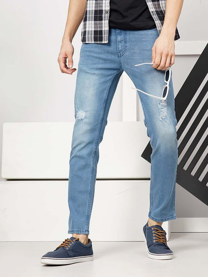 The Indian Garage Co Men Blue Slim Fit Low-Rise Low Distress Stretchable Jeans