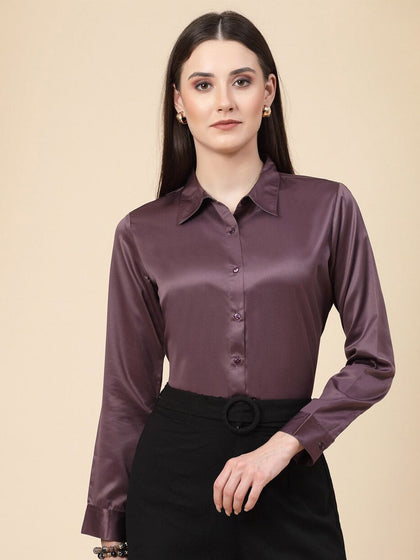 Style Quotient Mauve Spread Collar Smart Satin Formal Shirt
