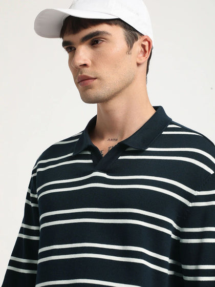 THE BEAR HOUSE Striped Regular Fit Cotton Polo Collar T-shirt