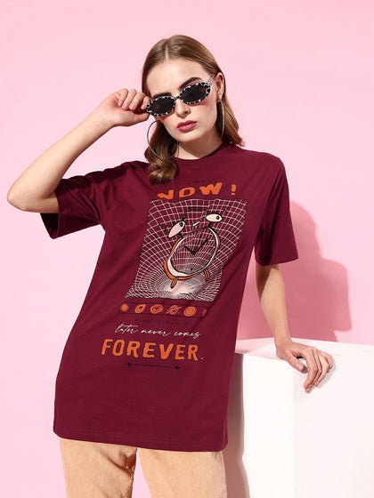 Difference of Opinion Women Printed Pure Cotton Oversized T-shirt