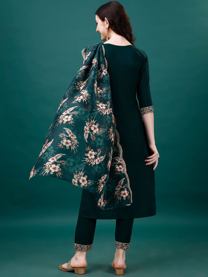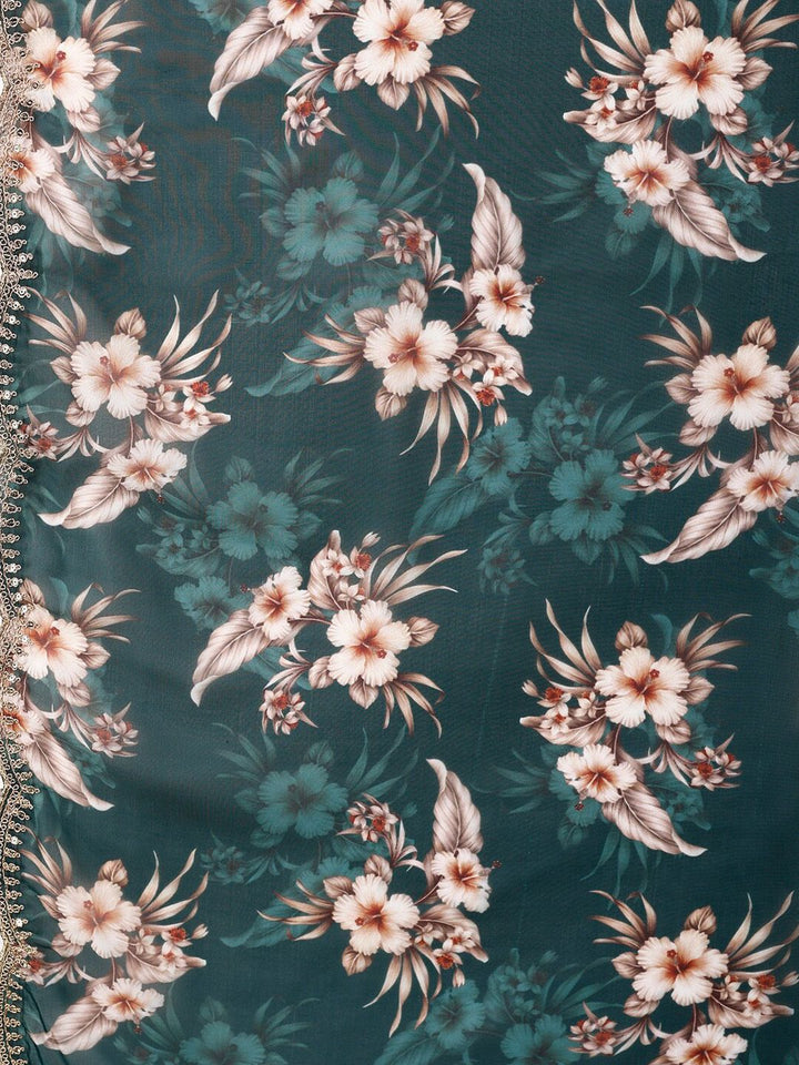 KALINI Floral Embroidered Sequinned Kurta & Trousers With Dupatta