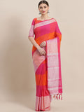 Pink and Orange checked saree and has a woven design border with tasselled detail