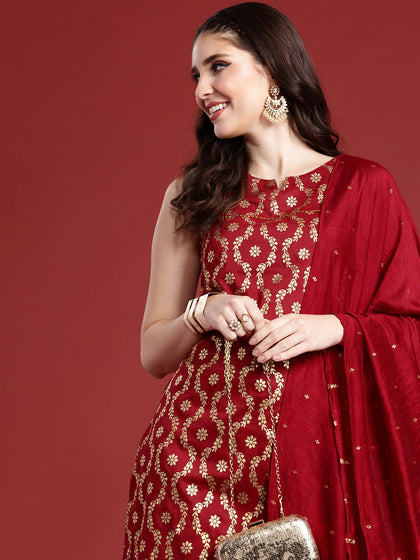 Anouk Ethnic Motifs Foil Printed Regular Sequinned Kurta with Trousers & Dupatta