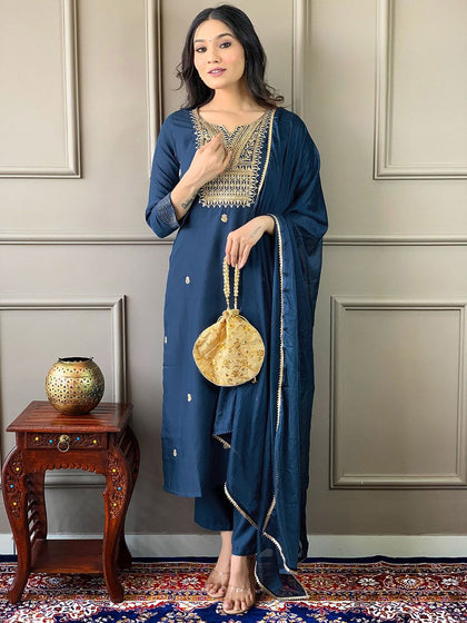 KALINI Women Embroidered Straight Kurta with Trousers & Dupatta