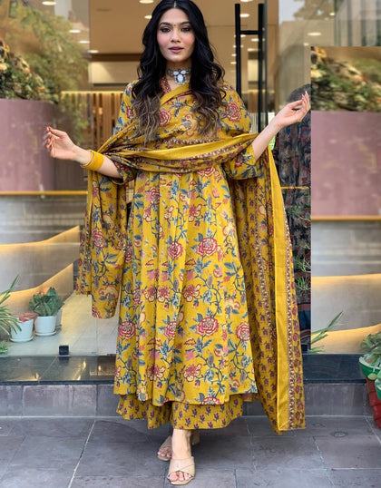 KALINI Ethnic Motifs Printed A-Line Kurta with Trousers & Dupatta