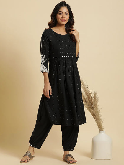 all about you Foil Printed Empire Kurta Sets With Dupatta