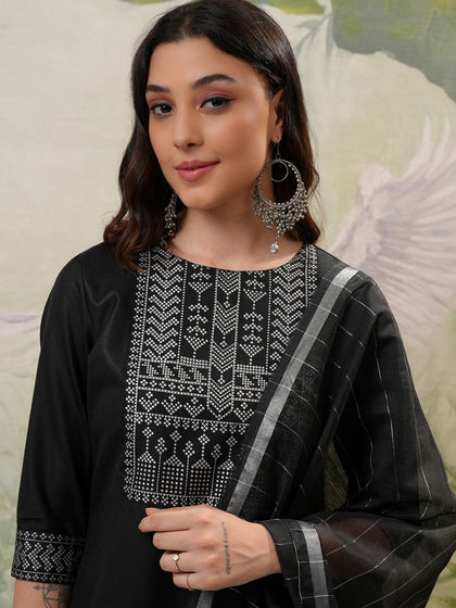 Vishudh Black Printed Regular Kurta with Trouser & Dupatta
