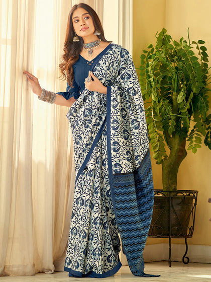 Block Print Silk Blend Saree