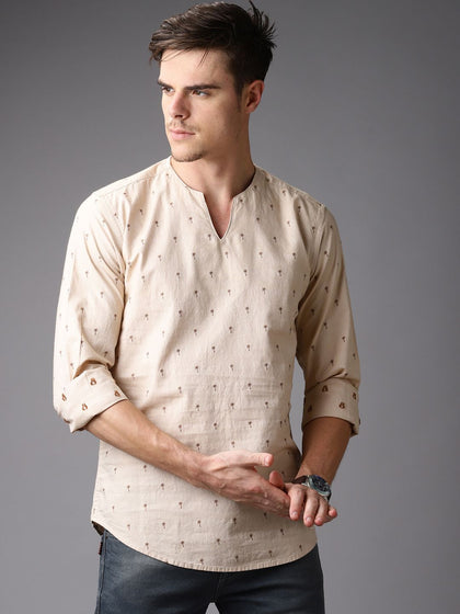 Jompers Men Mustard Yellow Geometric Embroidered Thread Work Kurta