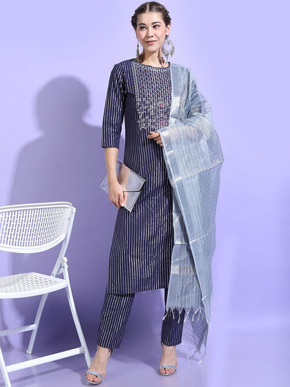 Indo Era Ethnic Motifs Embroidered Zari Kurta With Trousers & Dupatta