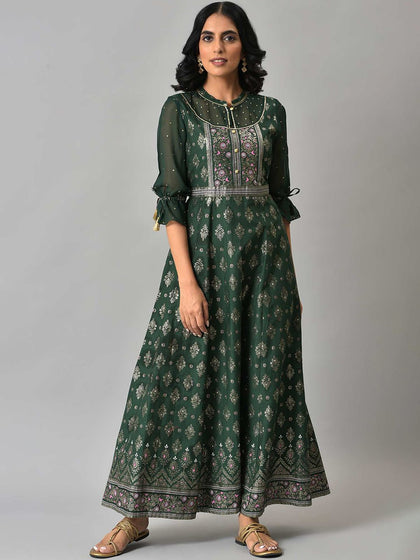 AURELIA Green Ethnic Motifs Ethnic Maxi Maxi Dress