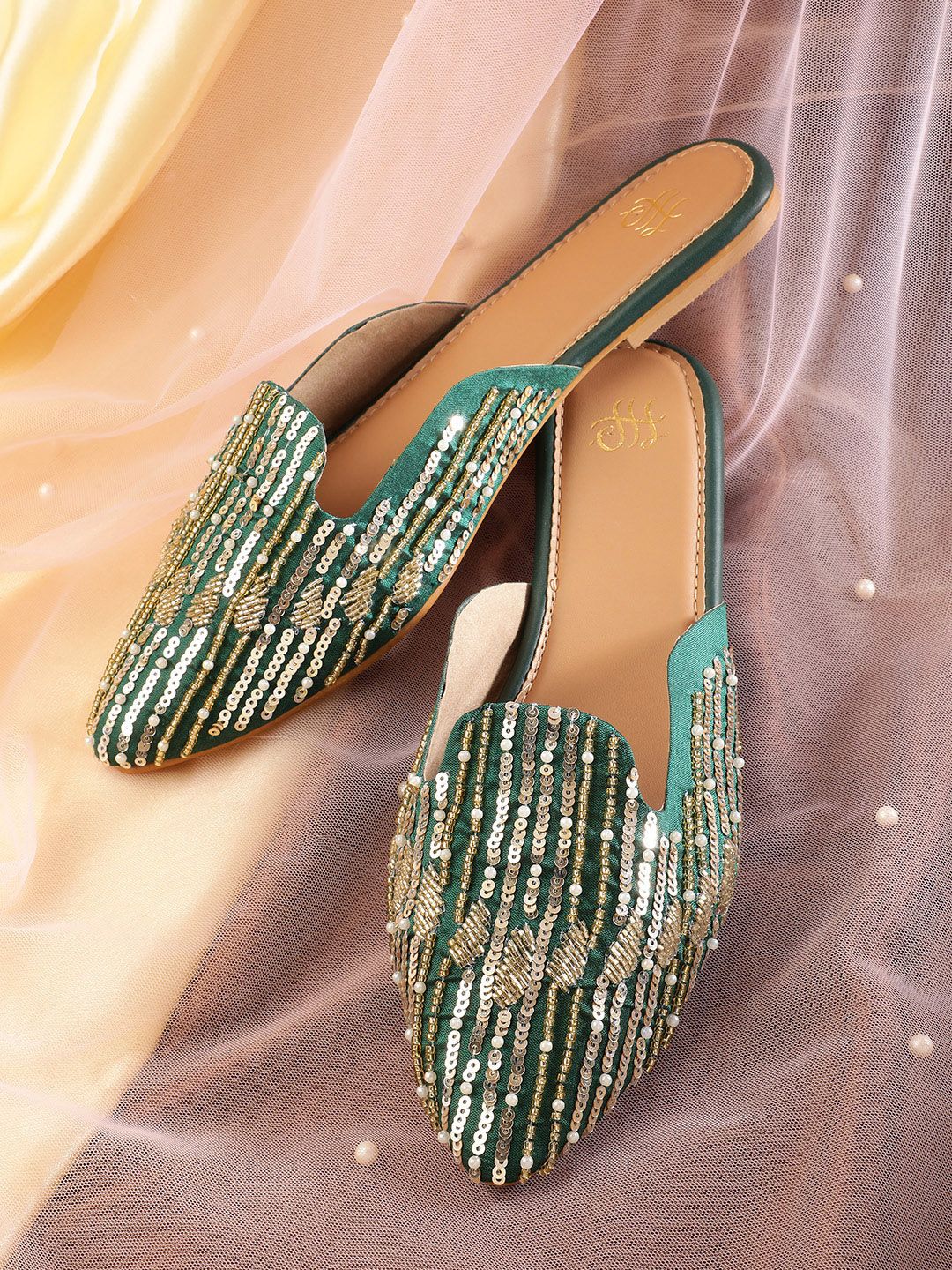 House of Pataudi Sequin Embellished Mules