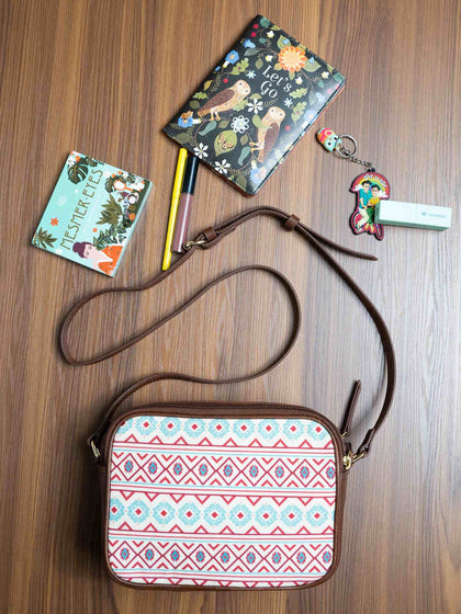 TEAL BY CHUMBAK Geometric Printed Canvas Structured Sling Bag