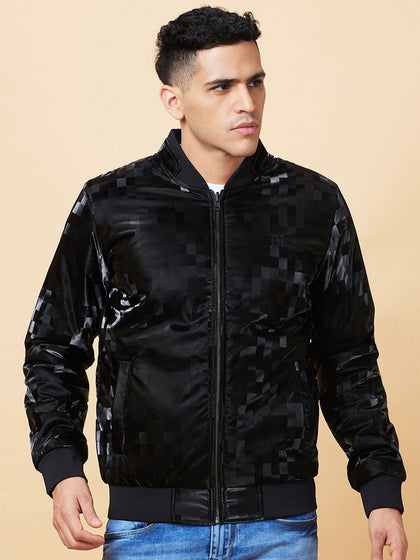 The Indian Garage Co Men High Neck Solid Revesible Bomber Jacket